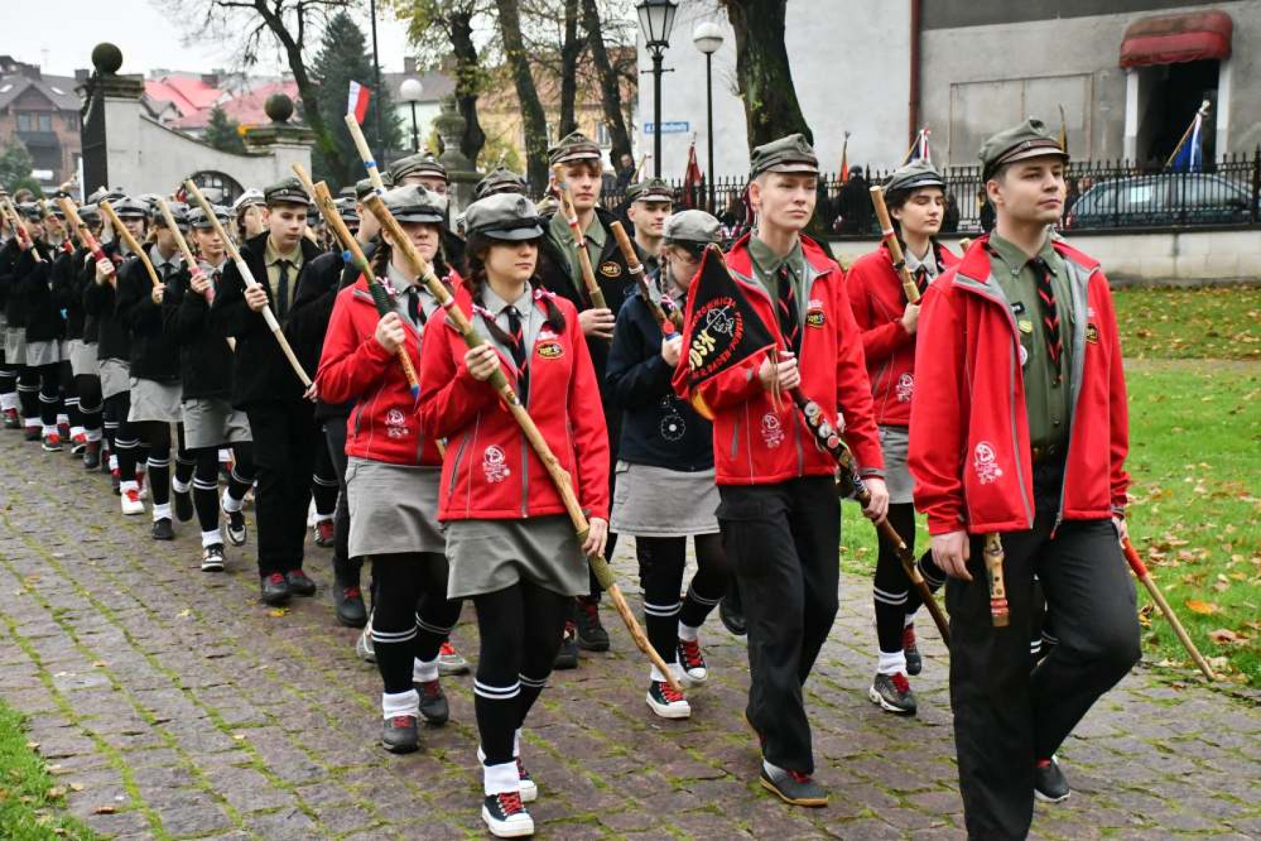 11 listopada 2023 w Miechowie - przemarsz do Domu Kultury