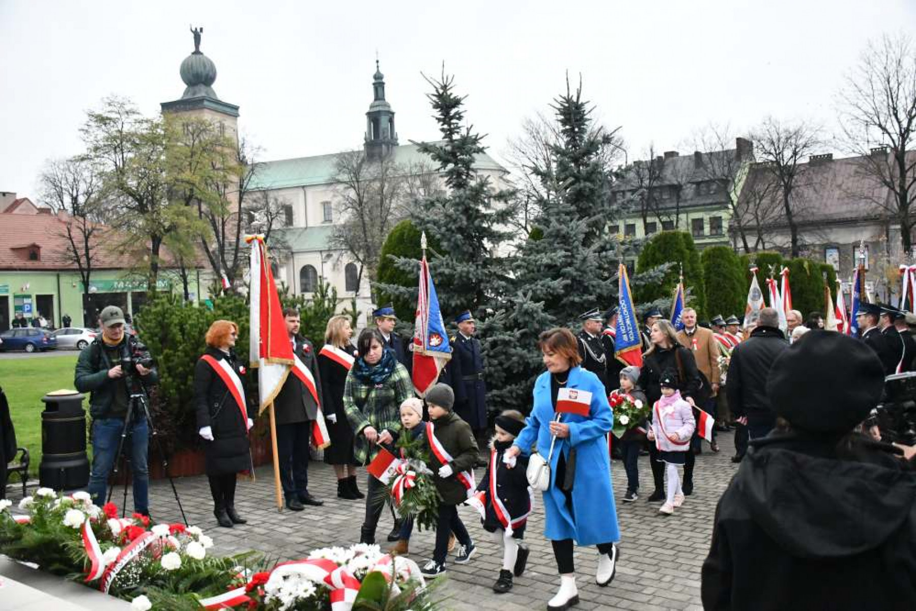 11 listopada 2023 w Miechowie - wiele pokoleń uczestników uroczystości