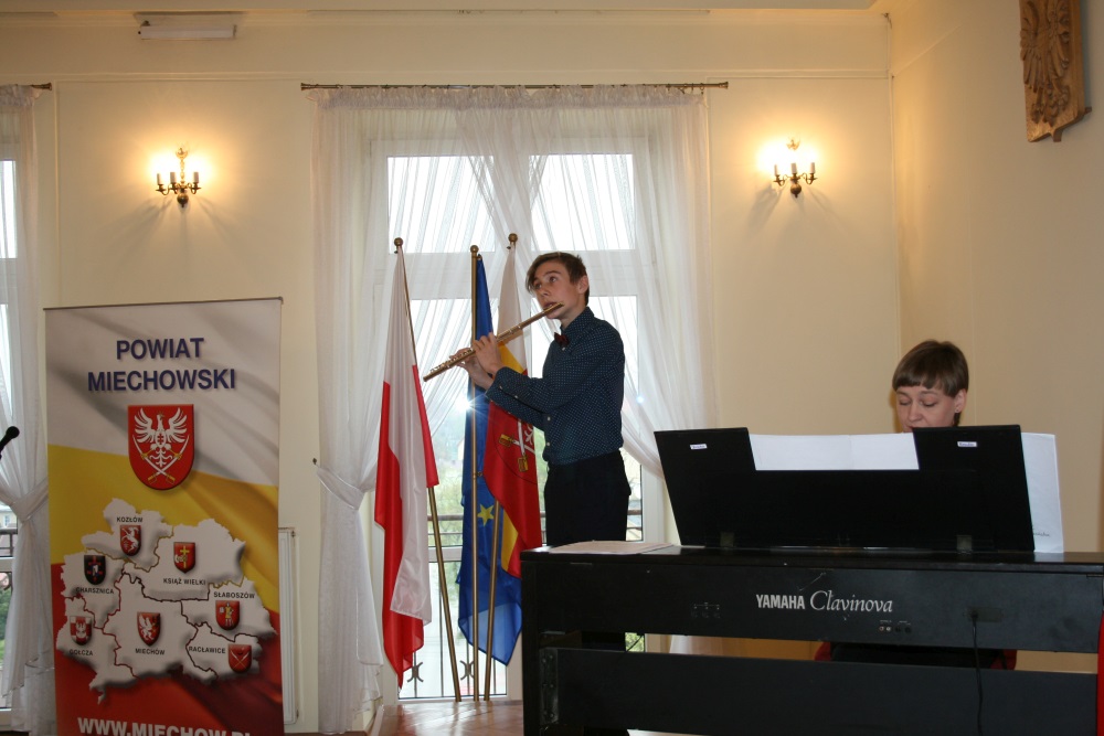 Rozpoczął je występ utalentowanego flecisty Marcela Podgórskiego, ucznia Państwowej Szkoły Muzycznej I stopnia w Miechowie. Jego nauczycielem jest Małgorzata Gadocha. Uczniowi akompaniowała Magdalena Miezin. O dotychczasowych sukcesach ucznia i jego repertuarze mówiła dyrektor Anna Macheta. Gości witał starosta Marian Gamrat. Wśród obecnych znaleźli się: wicemarszałek Województwa Małopolskiego Wojciech Kozak, wicestarosta Jerzy Pułka, burmistrz Dariusz Marczewski i przewodniczący rad obu szczebli – Mariusz Wolny i Zenon Czekaj.