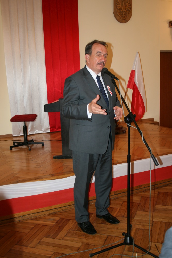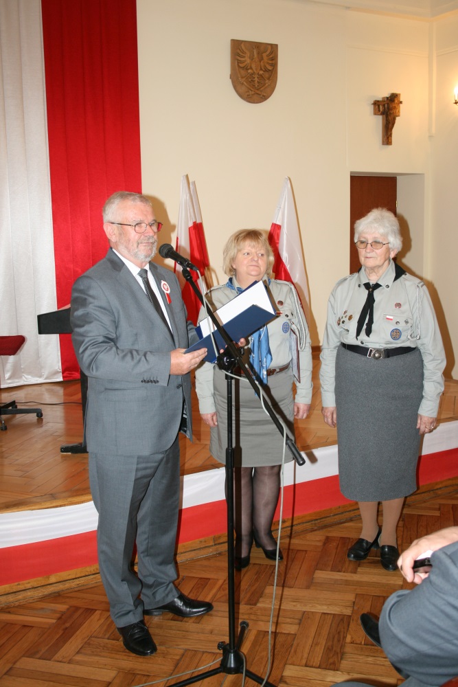 - Od momentu uchwalenia Konstytucja 3 maja zajmuje szczególne miejsce w świadomości narodowej Polaków. Jest symbolem wprowadzenia nowej jakości w polską myśl polityczną. Twórcy konstytucji rozumieli, że stary ustrój nie pasował do nowych czasów i wymogów, które niosło Oświecenie. Istotą zmian w konstytucji były m.in. zapisy o tradycji umiłowania wolności i demokracji. „Kto Ojczyźnie swojej służy, sam sobie służy” - głosił ks. Piotr Skarga. Podobnego zdania byli twórcy konstytucji sprzed ponad dwóch wieków - powiedział w okolicznościowym wystąpieniu starosta Marian Gamrat. Z kolei wicemarszałek Wojciech Kozak podzielił się z zebranymi własnymi przemyśleniami na temat istoty patriotyzmu, tego dawniejszego i obecnego. Nawiązał także do tradycji narodowowyzwoleńczych na ziemi miechowskiej. Tegoroczną nagrodę ,,Przyjaciela Powiatu” za wieloletnią, efektywną promocję Powiatu Miechowskiego otrzymała Komenda Hufca Związku Harcerstwa Polskiego w Miechowie. Starosta docenił utrwalanie i popularyzowanie przez Jubilata ponad 100 letniej historii ruchu i tradycji harcerskich na ziemi miechowskiej, skuteczne propagowanie postaw obywatelskich, patriotycznych i wychowawczych wśród młodego pokolenia powiatu, a także aktywność i współpracę we wszystkich przejawach życia społecznego w powiecie miechowskim. Statuetkę z wyobrażeniem dzwonnicy miechowskiej bazyliki z rąk starosty odebrała komendantka hm. Hermenegilda Jolanta Borkowska – Czekaj wraz z zastępcą hm. Danutą Rzemieniec.