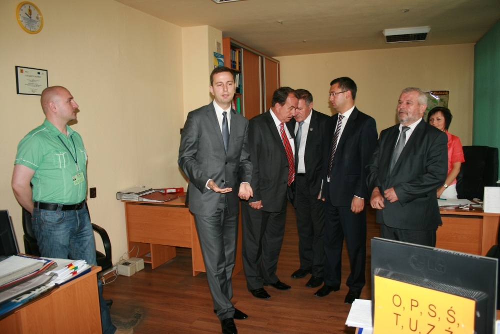 21 Sierpnia 2012(...) Minister zapowiedział, że z Funduszu Pracy do Małopolski trafi niebawem 27 mln złotych. Niewykluczone, że cząstkę środków z tej puli otrzyma powiat miechowski a konkretnie PUP, jeden z najaktywniejszych w województwie. Ministrowi towarzyszyli: dwaj doradcy - Marcin Horyń i Maciej Odrobina, wicemarszałek województwa małopolskiego Wojciech Kozak, radny wojewódzki Adam Domagała, starosta Marian Gamrat i wicestarosta Bogusław Miś oraz burmistrz Dariusz Marczewski. – Cieszę się, że aktywnie występujecie po dodatkowe pieniądze, zwłaszcza dla młodych bezrobotnych. Oni, w mojej opinii potrzebują najwięcej wsparcia – komplementował miechowski urząd minister za ponadpodstawowe działania na rzecz zmniejszenia 11% bezrobocia w powiecie. Dyrektor PUP Anna Frączkiewicz oprowadziła ministra po urzędzie, zapoznała z pracownikami i informowała o bieżącej pracy, sukcesach i bolączkach. – W tym roku otrzymaliśmy tylko 3.5 mln zł na nasze działania, za które udało się zaktywizować tylko 300. bezrobotnych – ubolewała dyrektor i przypomniała: – To niewspółmiernie mniej niż w 2010r., gdy kosztem pozyskanych wówczas 12,5 mln zł zaktywizowaliśmy aż 2 tys. osób bez pracy. W ocenie szefowej PUP ,,światełkiem w tunelu” są dotacje na uruchomienie działalności gospodarczej i doposażenie miejsc pracy oraz staże. Te formy działań na miechowskim rynku pracy cieszą się dużą popularnością. Wicemarszałek Kozak sugerował, aby niezbędne fundusze trafiały także do małych gospodarstw, ponieważ ok. 20% społeczności czynnej zawodowo w Małopolsce pracuje właśnie w rolnictwie. W rozmowie z ministrem i wicemarszałkiem miechowscy samorządowcy przypomnieli sprawy ślimaczących się budów drogi szybkiego ruchu S-7 i północnej obwodnicy Miechowa jako inwestycji pomocnych przy ożywieniu gospodarczym powiatu i zmniejszaniu bezrobocia w powiecie. Przedmiotem rozmów była również specjalna strefa ekonomiczna w powiecie miechowskim zlokalizowana w gminie Książ Wielki. Minister radził pobudzić działania wokół tego terenu i nadal zabiegać o inwestorów. – Walka z bezrobociem odbywa się przez wzrost gospodarczy – zachęcał gość. Wicemarszałek Kozak uznał, że miechowska strefa to dobre miejsce dla prowadzenia działalności z zakresu przetwórstwa spożywczego. Z kolei starosta przypomniał, że powiat przygotowuje się do sprzedaży określonej powierzchni gruntów rolnych w sąsiedztwie SSE, co może mieć wpływ na zainteresowanie tym terenem przez potencjalnych inwestorów. W dalszej kolejności Władysław Kosiniak – Kamysz zwizytował DPS ,,Betanię”. Rozmawiał z pensjonariuszami i pracownikami, przyglądał się zajęciom rehabilitacyjnym, wysłuchał relacji dyrektora Stanisława Sławińskiego o planach rozbudowy placówki, która osiągnęła bardzo wysokie standardy świadczenia usług opiekuńczo – leczniczych. Obecnie DPS dysponuje 67. miejscami, a jest szansa na utworzenie kolejnych 12. na bazie środków, które można pozyskać z PFRON. Minister był pod wrażeniem organizacji pracy, funkcjonalności i estetyki ,,Betanii”. A wicemarszałek Poniedziałkowy pobyt w Miechowie zakończył briefing prasowy ministra w miechowskim starostwie z udziałem stacji telewizyjnych, radiowych i dziennikarzy prasowych.