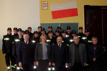(...) odbyły się w gminie Słaboszów. W spotkaniach z uczniami uczestniczyli starosta Marian Gamrat, wójt Gminy Słaboszów Zbigniew Kita, prezes Zarządu Powiatowego OSP RP i radny wojewódzki bryg. Adam Domagała, Marek Dróżdż, sekretarz ZG OSP w Słaboszowie i naczelnik Wydziału Oświaty Leonard Mazur. W Zespole Szkół w Dziaduszycach uczniowie kilku klas szkoły podstawowej i gimnazjum odebrali bluzy, spodnie, spódnice, czapki, pasy i toporki (wśród wyróżnionych były także dziewczęta). Sorty mundurowe zakupiono ze środków Wojewódzkiego Funduszu Ochrony Środowiska i Starostwa przy inspiracji powiatowych władz OSP. – Widząc wasz entuzjazm wierzę, że w przyszłości zasilicie szeregi zawodowej straży pożarnej – zauważył starosta. Bryg. Adam Domagała zachęcał młodych strażaków do udziału w planowanych w gminach i powiecie zawodach sprawnościowych młodzieżowych drużyn pożarniczych. Zaś wójt Słaboszowa nie krył radości ze strażackich i ekologicznych umiejętności uczniów ze swojej gminy. Przy okazji inauguracji wyróżniający się uczniowie otrzymali dyplomy za osiągnięte wyniki w Powiatowym Konkursie Ekologicznym pn. Woda źródłem życia. Organizatorom i sponsorom MDP w imieniu uczniów dziękował dyrektor Zespołu Stanisław Lichosik. Podobny przebieg miało spotkanie w Szkole Podstawowej w Janowicach. Uczniom towarzyszyli dyrektor Janusz Schab i wychowawczynie klas. Czerwone bluzy i akcesoria strażackie wywołały wśród najmłodszych uczniów żywiołowe zainteresowanie. Także w tej szkole obok kompletów umundurowania i wyposażenia najlepsi "ekolodzy” otrzymali wyróżnienia od przedstawicieli administracji powiatowej i OSP.