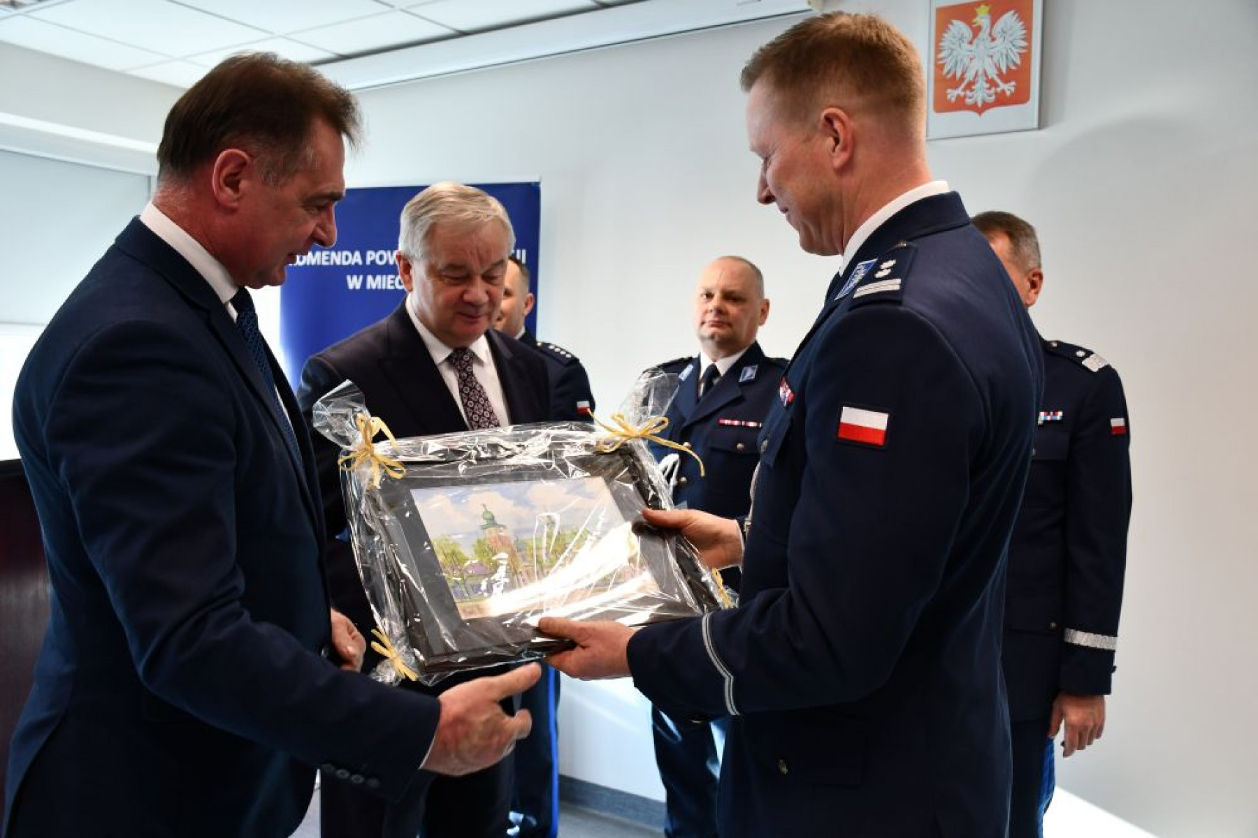 Podczas uroczystości Starosta Miechowski podziękował również odchodzącemu Komendantowi za wieloletnią służbę, profesjonalizm oraz zaangażowanie w realizację zadań związanych z zapewnieniem bezpieczeństwa publicznego.