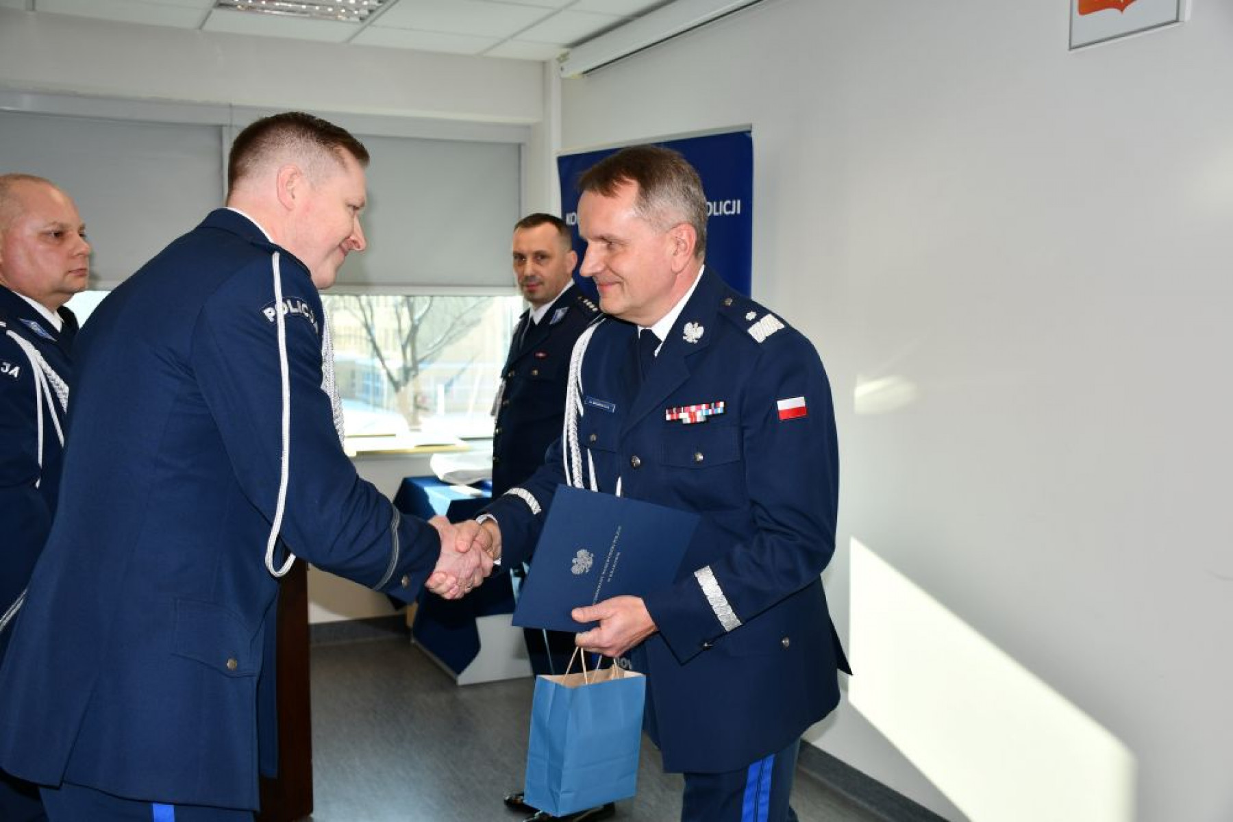Tego samego dnia odbyło się uroczyste pożegnanie młodszego inspektora Łukasza Radzięty, który zakończył zawodową służbę w Policji i przeszedł na zaopatrzenie emerytalne.