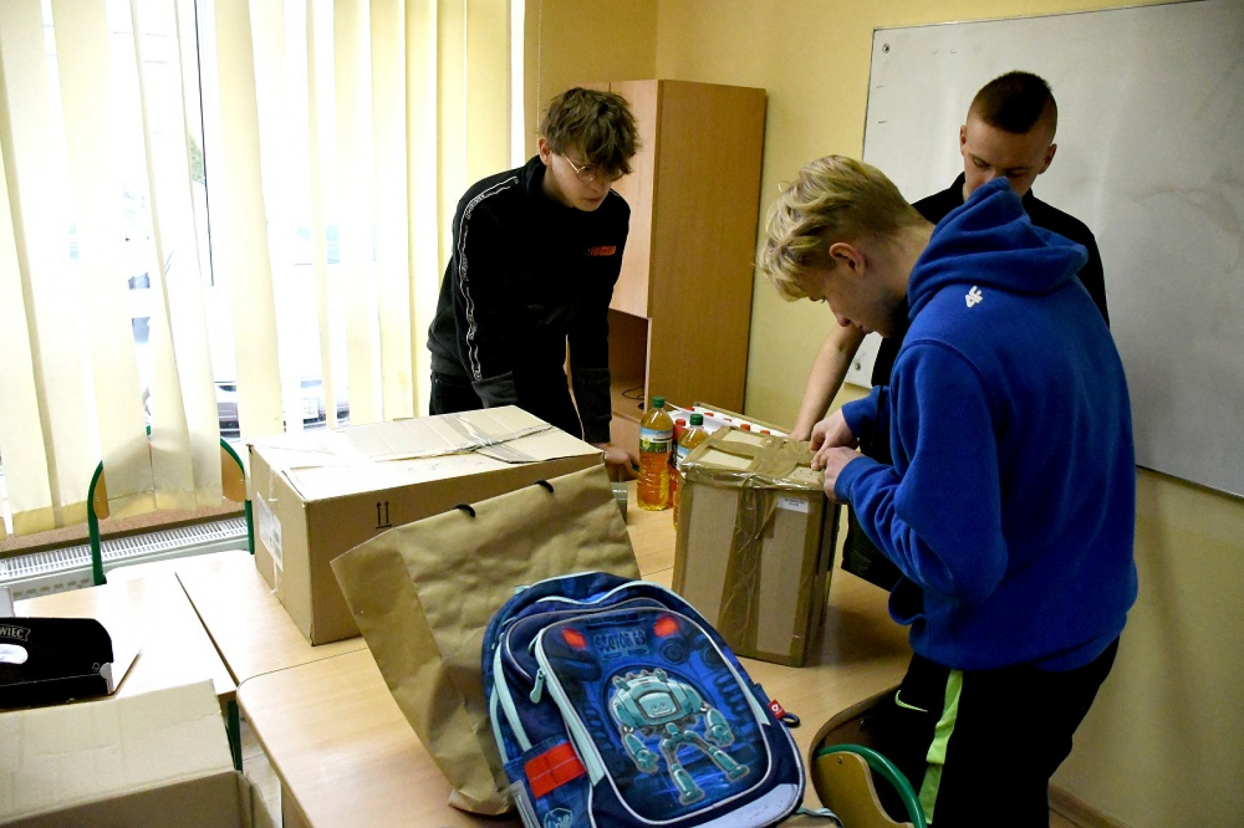 Młodzież ZS Nr 1 w Miechowie pakuje dary dla Ukraińców