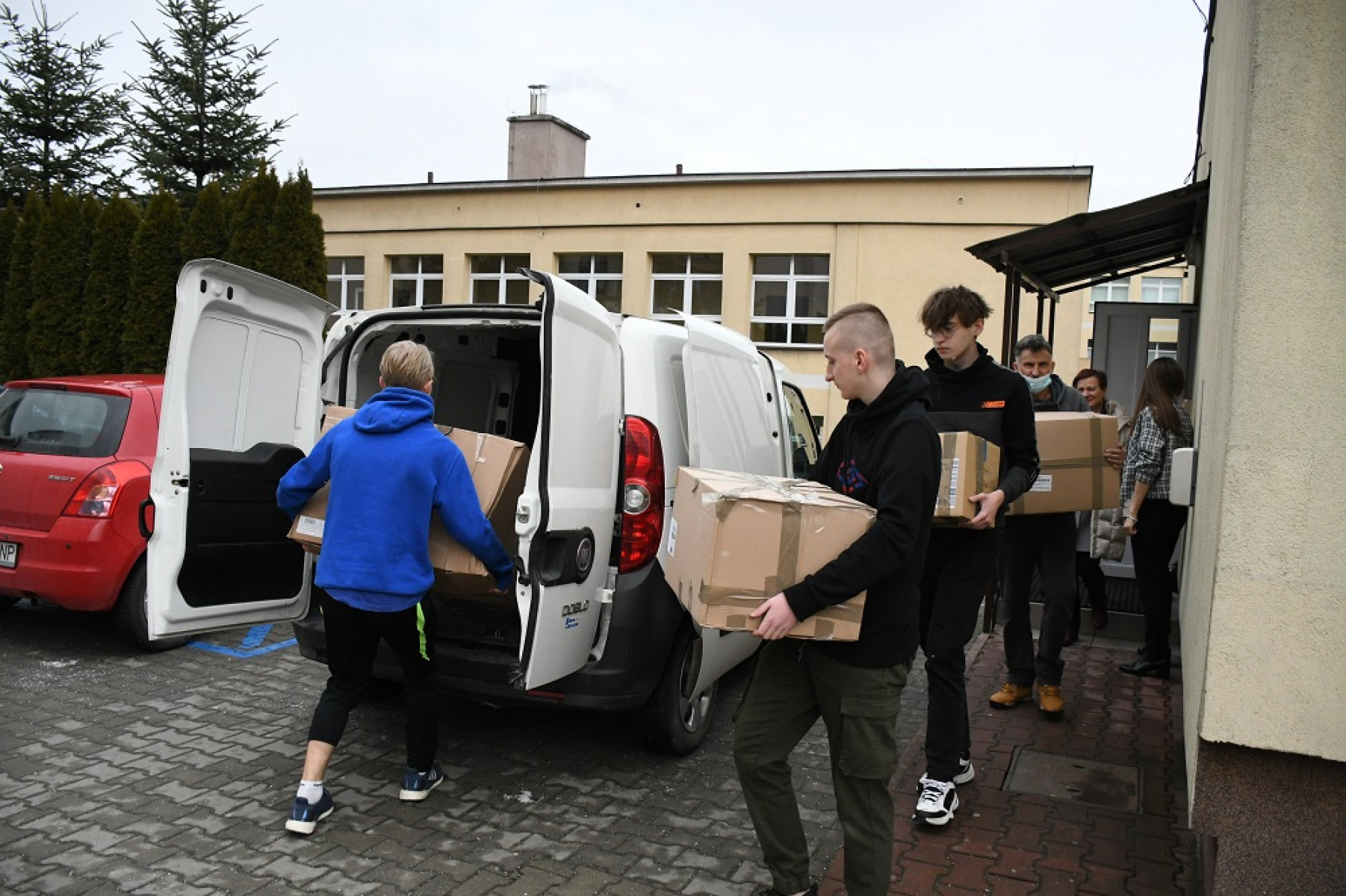 W akcję pomocy aktywnie włączyła się młodzież z miechowskich szkół średnich. Samorząd Szkolny Zespołu Szkół Nr 1 przy wsparciu dyrekcji i nauczycieli, na poziomie klas zorganizował zbiórkę produktów, która w piątkowe południe przetransportowana została do PMP. Lista zgromadzonych produktów, które wypełniły samochód transportowy, jest długa. W zbiórkę zaangażowani byli też ukraińscy uczniowie „Ekonomika” mieszkający od kilku lat w naszym powiecie. Jeden z nich tuż przed wybuchem wojny był w odwiedzinach w rodzinnym Żytomierzu. Jak podkreśla dyr. Marzena Samborska, jest to trzecioklasista, jeden z lepszych i lubianych przez rówieśników uczniów szkoły o zdolnościach matematycznych, do której uczęszcza od 1 klasy. Uczniowie pochodzenia ukraińskiego zostali objęci szkolną pomocą psychologiczno-pedagogiczną.