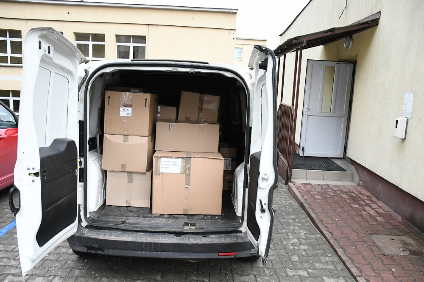 Samochód transportowy spod ZS Nr 1 w Miechowie przed wyjazdem do PMP