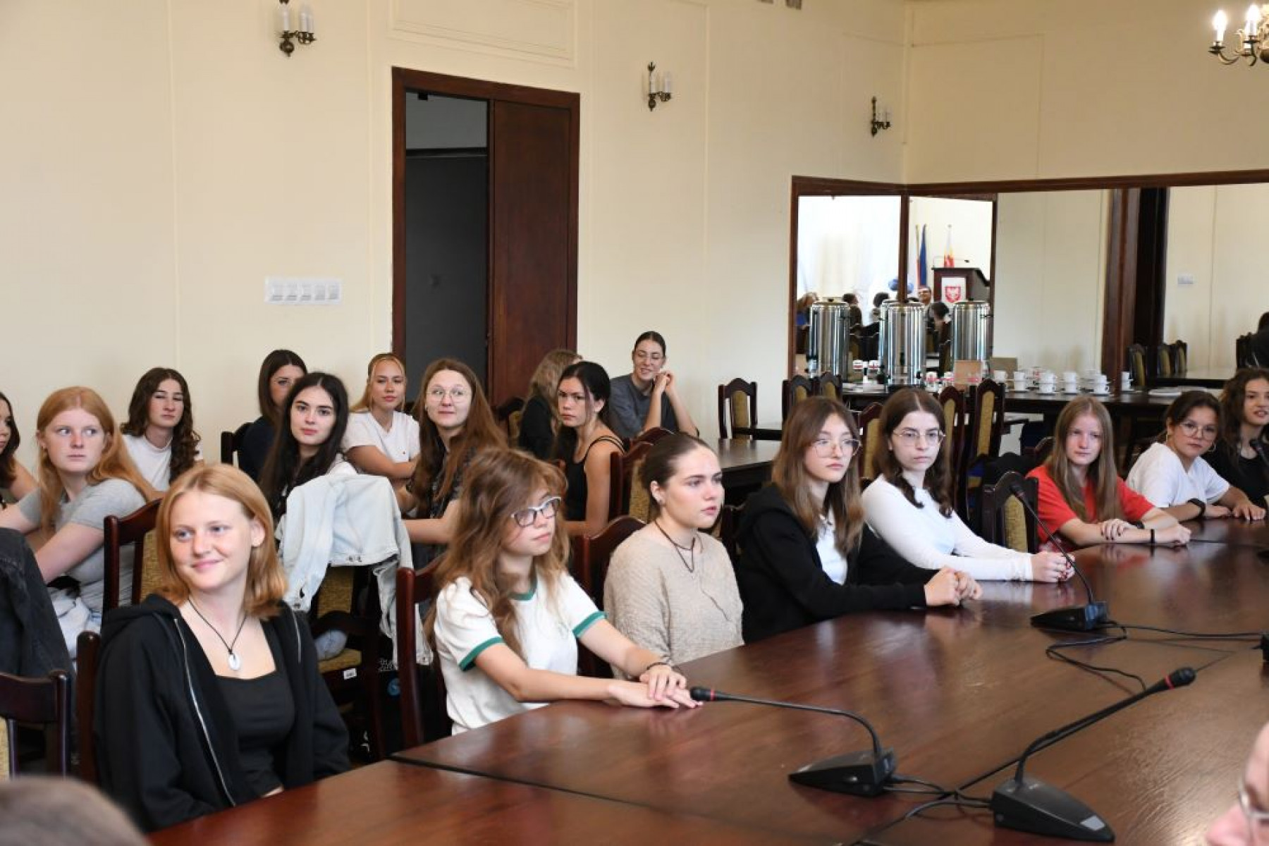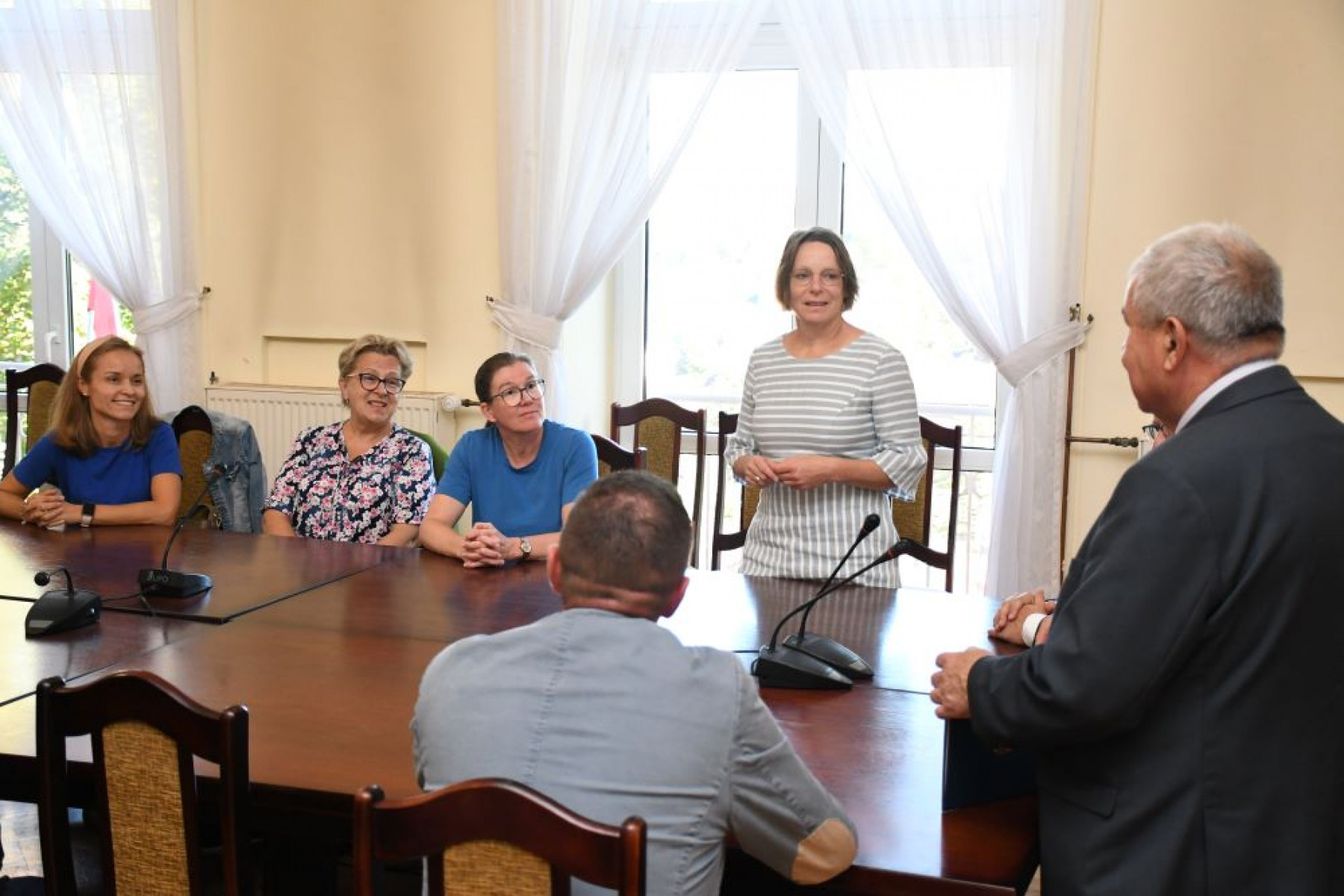 Starosta Jacek Kobyłka wita młodzież i opiekunów wymiany LO Miechów
