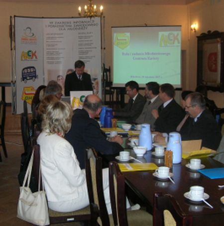Kolejna część spotkania, czyli uroczyste otwarcie MCK w drugim budynku starostwa przy ul. Sienkiewicza 27, zapoczątkowana została symbolicznym przecięciem wstęgi. Następnie zebrani mieli okazję do wysłuchania cyklu seminariów pn. ,,Młodzieżowe Centrum Kariery - twoją szansą na przyszłość". Ich adresatem byli pedagodzy szkolni, psycholodzy, nauczyciele oraz licznie zgromadzona młodzież. Tematyka wykładów obejmowała m.in. zagadnienia przyszłości rynku pracy, pracy i kariery w krajach UE, rozpoczęcia własnej działalności gospodarczej, poradnictwa zawodowego, itp. Dostępne były stoiska Mobilnego Centrum Informacji Zawodowej i Młodzieżowego Biura Pracy OHP w Krakowie. Przeprowadzono zajęcia grupowe dla młodzieży szkół gimnazjalnych, jak również umożliwiono bezpośredni kontakt z doradcami zawodowymi.