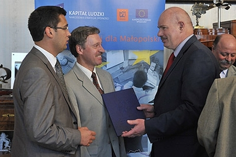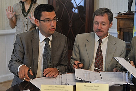 (...) Miechowskim umowa partnerska na rzecz realizacji projektu systemowego Województwa Małopolskiego pn. „Modernizacja kształcenia zawodowego w Małopolsce”. Umowę podpisywali: ze strony Województwa małopolskiego – marszałek Marek Nawara i członek zarządu Wojciech Kozak, a ze strony Powiatu Miechowskiego- starosta Mieczysław Bertek i członek zarządu Dariusz Marczewski.
