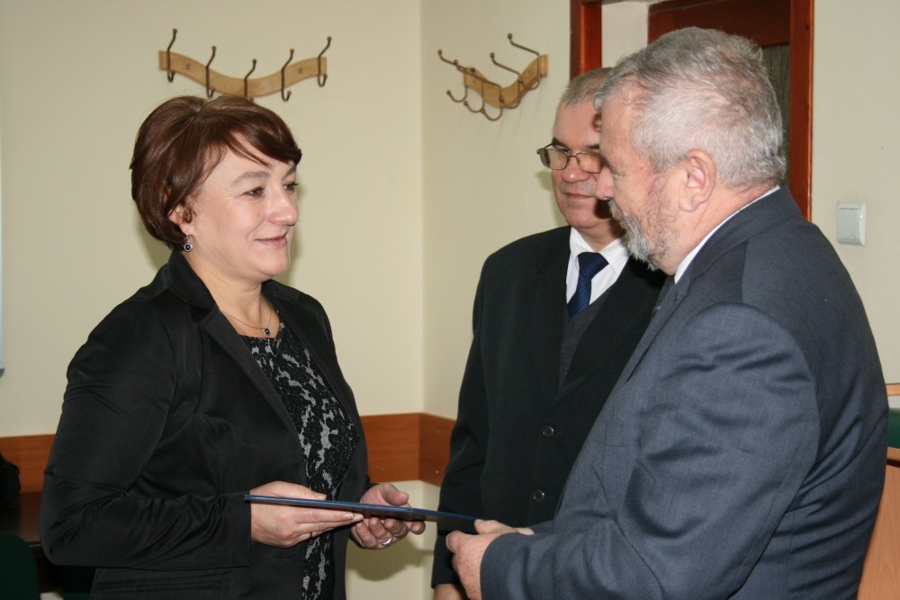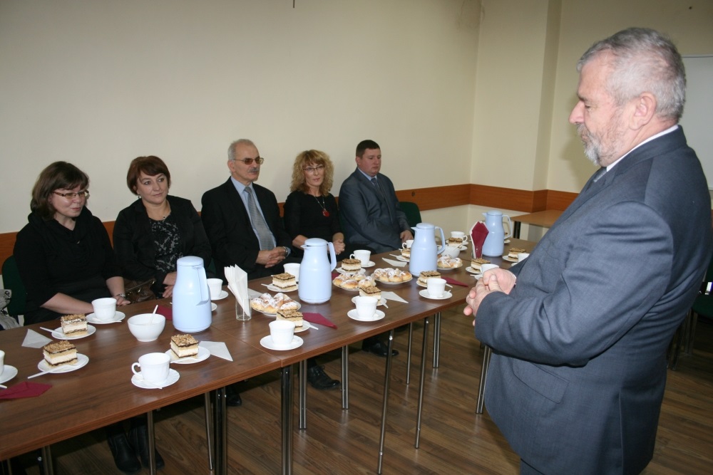 Na spotkaniu z wyróżnionymi w Wydziale Oświaty, Kultury i Sportu, w obecności naczelnika Leonarda Mazura, starosta pogratulował dyrektorom i nauczycielom nagród i osiągniętych wyników oraz wspomniał o dobrym naborze do szkół na nowy rok szkolny 2014/15. Dodał jednak, że poważnym wyzwaniem jest niż demograficzny w powiecie, który rzutuje na funkcjonowanie szkół średnich (mniej absolwentów gimnazjów niż cztery lata temu). Starosta wspomniał o bardzo pozytywnych efektach udziału szkół zawodowych w projekcie ,,Modernizacja kształcenia zawodowego w Małopolsce”. Dyrektor Maria Paschek w imieniu nagrodzonych podziękowała staroście, dotychczasowemu Zarządowi Powiatu i naczelnikowi Wydziału Oświaty za czteroletnią współpracę, wsparcie i zrozumienie dla potrzeb powiatowego środowiska nauczycielskiego.