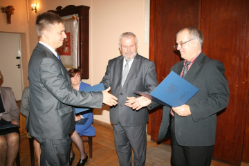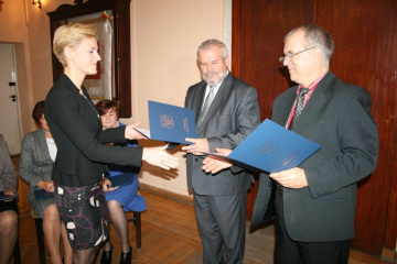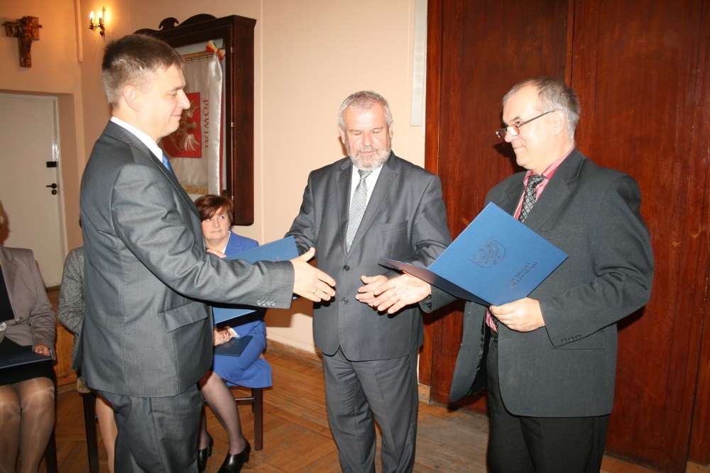 15 Października 2013(...) - Obecny rok edukacyjny w naszych szkołach był dobry. Zostały spełnione nabory do klas pierwszych i potwierdziły się kierunki nauczania prowadzone przez szkoły. Równie dobrze wypadły matury, szkoły osiągnęły dobre lokaty w rankingach, szkolna społeczność zyskała nowy obiekt do uprawiania sportu – przypomniał starosta i wyraził ubolewanie, że na forum społeczności powiatowej i niektórych mediów pojawiają się próby dyskredytowania nauczycielskiego wysiłku. Nagrody, które wręczał starosta razem z Leonardem Mazurem, naczelnikiem Wydziału Oświaty, Kultury i Sportu otrzymało 12. nauczycieli z nast. jednostek: LO – dyrektor Zygmunt Dróżdż, Krzysztof Gajos i Przemysław Skoczeń; ZS Nr 1 – dyrektor Marzena Samborska, Teresa Mucha i Renata Węgrzynowicz; ZS Nr 2 – dyrektor Maria Paschek, Marta Czapla i Anna Zazulak; ZS w Książu Wielkim – Jan Biesaga; Bursa Szkolna – dyrektor Elżbieta Piwowarska i Specjalny Ośrodek Szkolno – Wychowawczy w Zagorzycach – Marzena Caba, wychowawca internatu. W imieniu wyróżnionych dziękował staroście, jak również Zarządowi Powiatu i radnym za troskę o właściwy poziom bazy oświatowej dyr. Zygmunt Dróżdż. Ponadto dwóch pedagogów powiatowych zostało uhonorowanych nagrodami wyższego szczebla. Krystyna Gamrat, nauczyciel ZS Nr 2 w Miechowie otrzymała nagrodę Ministra Edukacji Narodowej, a Rafał Zagórski, dyrektor SOSW w Zagorzycach – nagrodę Kuratora Małopolskiego. W roku szkolnym 2013/2014 w powiecie miechowskim, w szkołach ponadgimnazjalnych i placówkach oświatowych pracuje łącznie 233 nauczycieli.