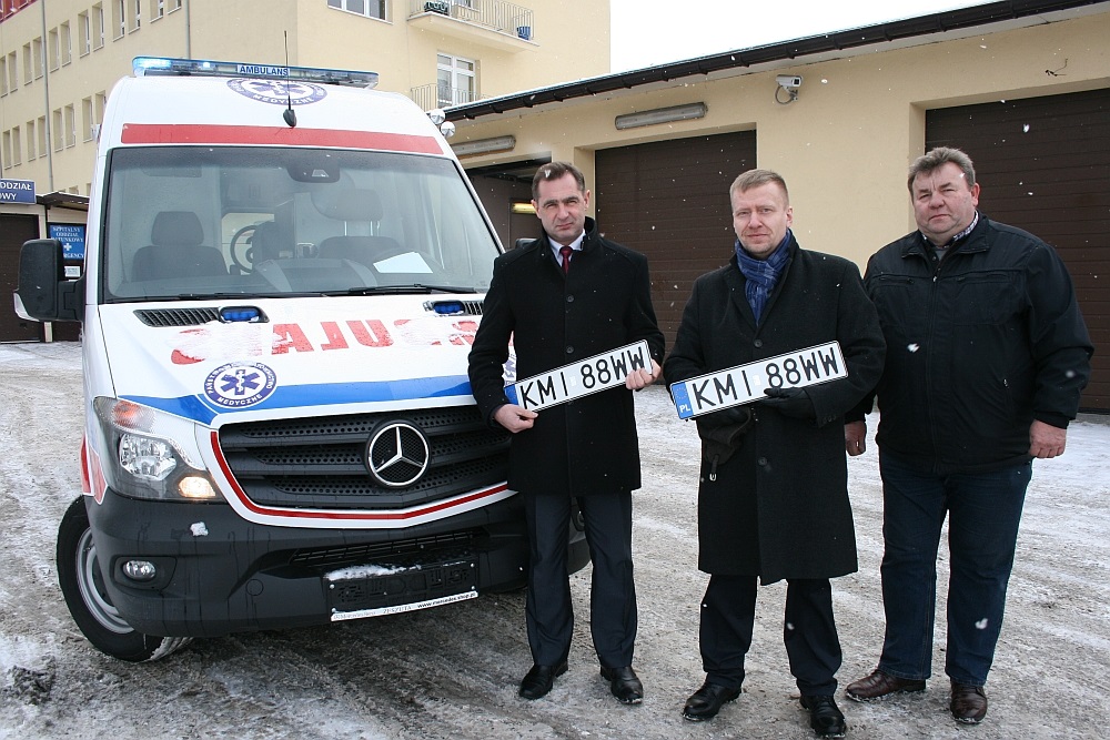 21 Stycznia 2016(...) Zakup wspomogło też starostwo miechowskie. Powiększone gabaryty auta, funkcjonalne i ergonomiczne wnętrze oraz usprawnienia techniczne to główne atuty pojazdu renomowanej firmy. - Cieszymy się, że nasze działania administracyjne zakończyły się doposażeniem szpitala w cenny sprzęt, który usprawni jakość i szybkość działania służb ratowniczych – powiedział wicestarosta Jerzy Pułka przekazując kluczyki wraz z dokumentami i tablicami rejestracyjnymi dyrektorowi szpitala Mirosławowi Drożdżowi. Przy odbiorze ambulansu obecni byli także przedstawiciele oddziału ratunkowego, urzędu powiatowego i producenta. - To powód do radości i dowód kolejnej troski miechowskiego starostwa o doposażenie naszego szpitala. Mamy teraz siedem karetek, co zwiększa nasze pole działania w tym zakresie – skomentował wydarzenie dyrektor M. Dróżdż. Nowy ambulans jest symbolem udanego otwarcia 2016 roku dla miechowskiej lecznicy.