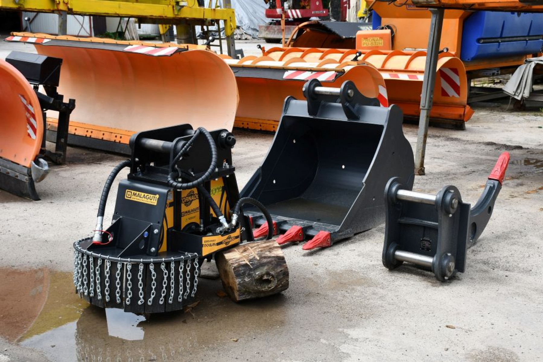 Frezarka do pni, łyżka koparkowa z zębami i ząb zrywak
