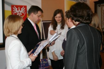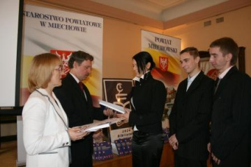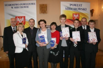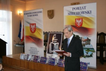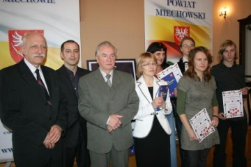 31 Marca 2010(...) Książka została wydana w obrębie projektu pod tym samym tytułem w ramach Programu Operacyjnego Kapitał Ludzki, Priorytet IX - Rozwój wykształcenia i kompetencji w regionach, Działanie 9.5, przy bezpośrednim zaangażowaniu Powiatowej i Miejskiej Biblioteki Publicznej w Miechowie, Miechowskiego Towarzystwa 1163 Roku oraz nauczycieli i uczniów gimnazjów i szkół ponadgimnazjalnych powiatu. Świadkami promocji było kierownictwo powiatu miechowskiego, burmistrz, przedstawiciele gmin, organizacji pozarządowych, zakładów pracy i placówek kultury, lokalni historycy i regionaliści, nauczyciele i uczniowie współtworzący opracowanie oraz dziennikarze. Gościem była Anna Łyżwa z Regionalnego Ośrodka Europejskiego Funduszu Społecznego w Krakowie, nadzorująca projekt w ramach unijnego programu. Prowadzący promocyjne potkanie Ryszard Nasada, rzecznik prasowy powiatu podkreślił, że ,,nowe dziecko poligraficzne" stało się automatycznie najnowszą pozycją w bibliografii dotychczasowych wydawnictw o mieście Jaksy i ziemi miechowskiej. Przypomniał także poprzednie udane promocje, jakie miały miejsce w starostwie (,,Kocham Miechów" - 2000r. i ,,Bazylika Grobu Bożego" 2007r.). Główną część prezentacji stanowiły wystąpienia zespołu redakcyjnego. Maria Słuszniak, dyrektor miechowskiej książnicy i koordynator powiatowy projektu, przedstawiła założenia i cele podjętej inicjatywy. Ze środków EFS udało się pozyskać ponad 48.000 zł, które umożliwiły druk 5 tys. egzemplarzy. - Nowe opracowanie będące symbiozą doświadczenia twórczego miejscowych regionalistów i uczniowskiego entuzjazmu przyniosło efekt, który przyczyni się niewątpliwe do jeszcze lepszej znajomości dziejów Miechowa i ziemi miechowskiej - konkludowała szefowa projektu. Włodzimierz Barczyński, współautor i twórca oprawy graficznej książki opowiedział o zakulisach tworzenia wydawnictwa (praca nad tekstem, podział na rozdziały i części tematyczne, tworzenie składu i grafiki, ciekawostki historyczne, itp.), wspierając swój wywód prezentacją multimedialną. Historyk i regionalista Stanisław Piwowarski jako drugi współautor przybliżył słuchaczom istotę pojęcia ,,regionalizm", przewijającego się na kartach nowego wydawnictwa. Starosta Mieczysław Bertek dziękowała autorom za nową pracę, której walorem jest twórczy wkład uczniów i nauczycieli w przybliżanie i zgłębianie historii własnego miasta i tutejszej ziemi. Z kolei burmistrz Krzysztof Świerczek dziękował dyrektor Marii Słuszniak za zaangażowanie w projekt, podjęcie wysiłku jego wdrożenia i uzyskanie ,,książkowego efektu". Szefowie obu samorządów wręczyli szkolnym autorom (w sumie 55 osobom) pierwsze egzemplarze nowej książki i specjalne certyfikaty honorujące ich twórczy wysiłek. Także pozostali uczestnicy promocyjnego spotkania opuszczali budynek starostwa z "Ziemią Miechowską" w rękach. Nakład nowej książki zostanie skierowany do placówek oświatowych uczestniczących w projekcie i bibliotek w powiecie miechowskim.