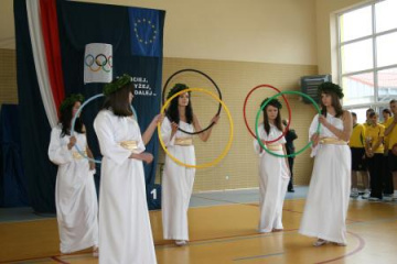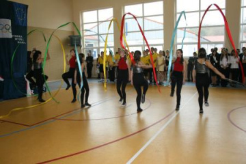 Przekazanie sali zwieńczył oryginalny pokaz w wykonaniu młodzieży ZS Nr 1, który nawiązał do idei ruchu olimpijskiego. Pełen symboliki, barwnej scenografii, ciekawej muzyki i pomysłowej choreografii został przyjęty aplauzem widowni.