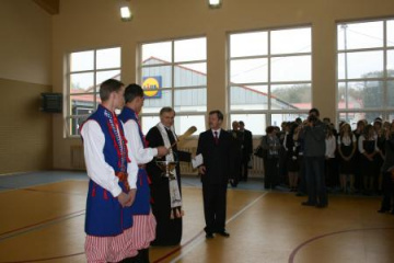 Nową salę poświęcił ks. Prałat Jerzy Gredka, proboszcz Parafii Grobu Bożego Miechowie. Kulminacją uroczystości było przekazanie kluczy do nowej sali przez starostę Mieczysława Bertka dyrektorowi szkoły Marzenie Samborskiej. Uczniowie otrzymali zestaw sportowych piłek na dobry początek z życzeniami ,,roztropnych ćwiczeń”.
