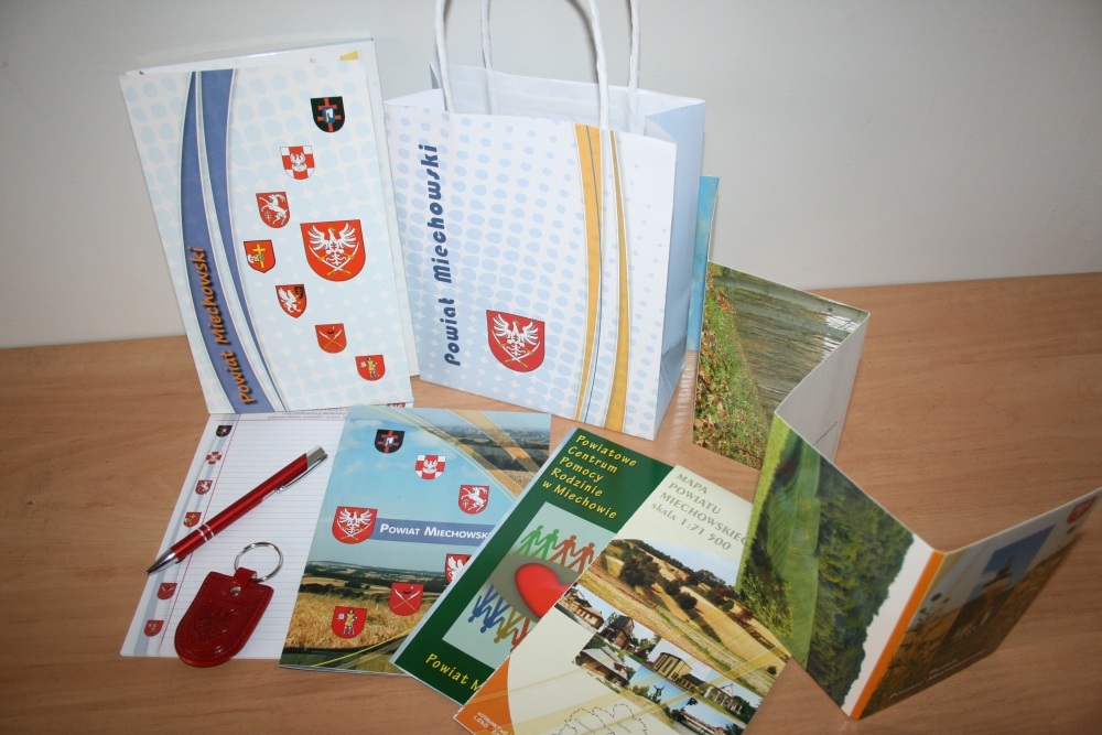 (...) Wewnątrz znajdują się: folder z podstawowymi informacjami (historia, opisy powiatu i gmin, statystyka, wykaz radnych, itp.), mapa turystyczna powiatu z niezbędnymi informacjami (baza noclegowo-żywieniowa, szlaki turystyczne, rezerwaty przyrody), ulotki dot. ,,powiatu w pigułce" (z wersją angielską) i pomocy społecznej, zestaw widokówek autorstwa pracowników urzędu oraz notes. Rolę gadżetów pełnią długopis i brelok z herbem powiatu. - Staramy się, aby w każdej kolejnej kadencji samorządu powiatowego materiały poligraficzne były zróżnicowane. Obecnie przygotowaliśmy nowy, zaktualizowany materiał informacyjny w innej niż dotychczas formie, bardziej poręcznej, łatwej do używania i przechowania, w odmienionej szacie graficznej, w której zawarliśmy nowocześniejsze akcenty graficzne. Mamy nadzieję, że nowy zestaw będzie dobrze służył promocji powiatu miechowskiego, bo wykorzystamy go m.in. w przy oficjalnych urzędowych i samorządowych spotkaniach, kontaktach krajowych i zagranicznych. Z pewnością będzie przydatny turystom i miłośnikom ziemi miechowskiej. Wierzymy, że zawarte w nim informacje zachęcą naszych gości, ale także miechowian do pogłębienia wiedzy o lokalnej tożsamości - mówi Ryszard Nasada, rzecznik prasowy starostwa i współautor, razem z Łukaszem Pierzchałą z Referatu Inwestycji, Promocji i Rozwoju oraz Marcinem Kumonem z Wydziału Leśnictwa, koncepcji merytorycznej i graficznej nowych materiałów promocyjnych. Skład i opracowanie są efektem pracy krakowskiego Wydawnictwa Lobo Soft II, specjalizującego się w kartografii. Wersja elektroniczna nowych materiałów promocyjnych powiatu jest dostępna na stronie - www.miechow.pl