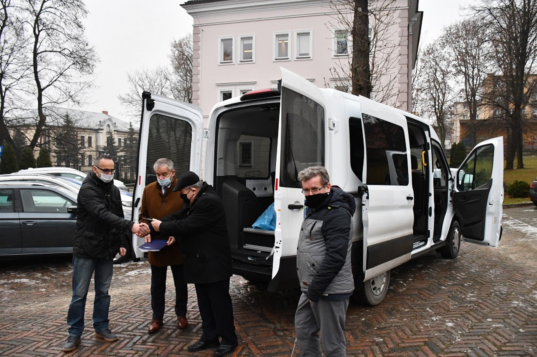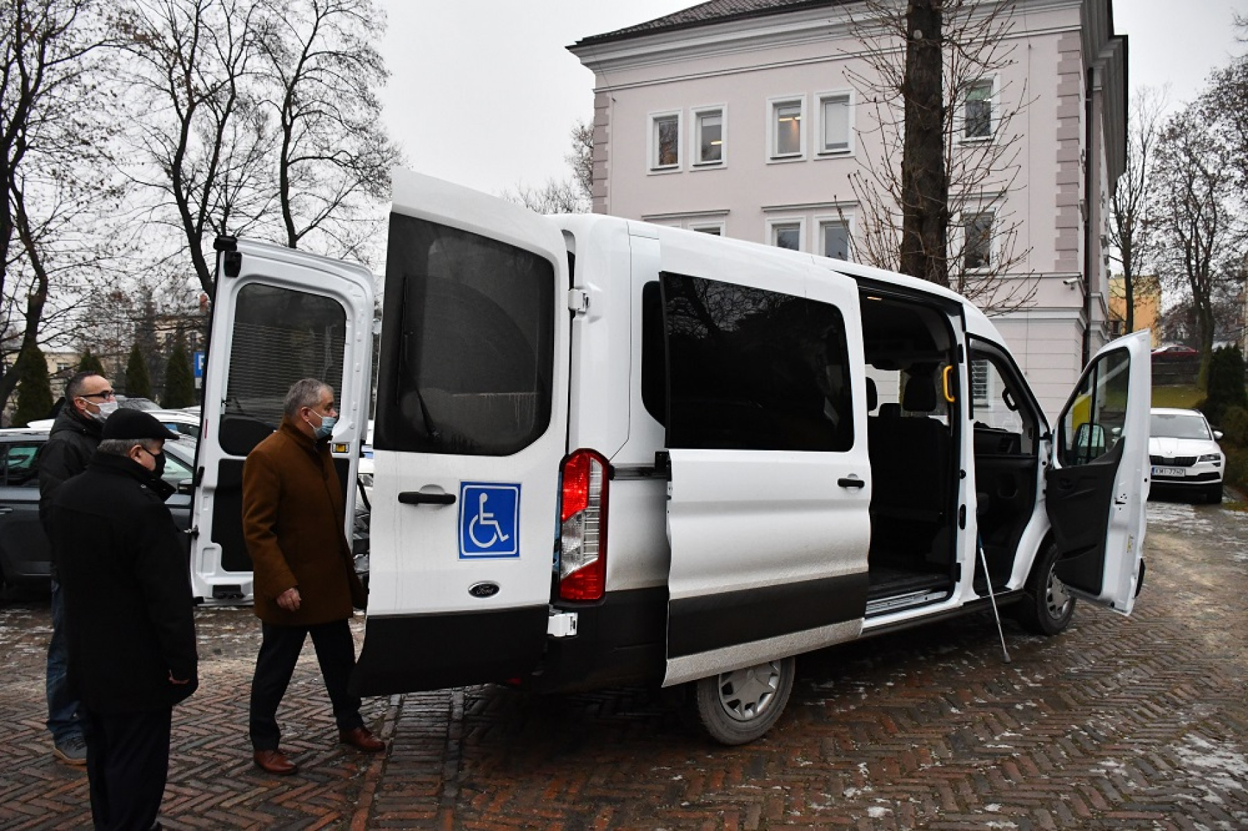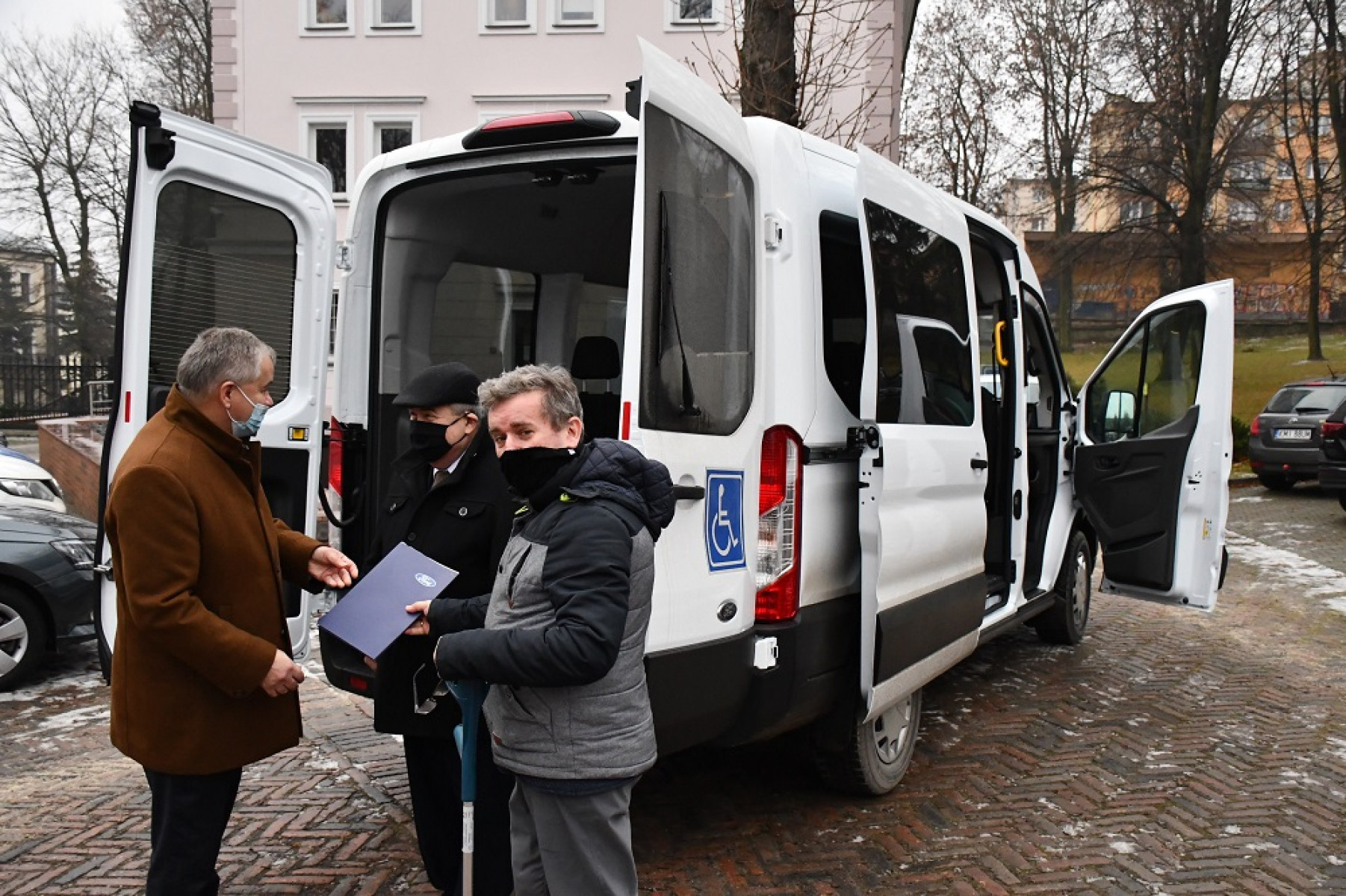 14 grudnia na parkingu Starostwa Powiatowego w Miechowie nastąpiło przekazanie nowego pojazdu dla podopiecznych Specjalnego Ośrodka Szkolno-Wychowawczego w Zagorzycach. Kluczyki oraz dokumenty do 9-osobowego mikrobusa marki Ford Transit, przystosowanego do przewozu jednej osoby na wózku inwalidzkim, dyrektorowi Wojciechowi Pengielowi oraz kierowcy przekazali włodarze Powiatu Miechowskiego - starosta Jacek Kobyłka i przewodniczący Rady Krzysztof Świerczek.