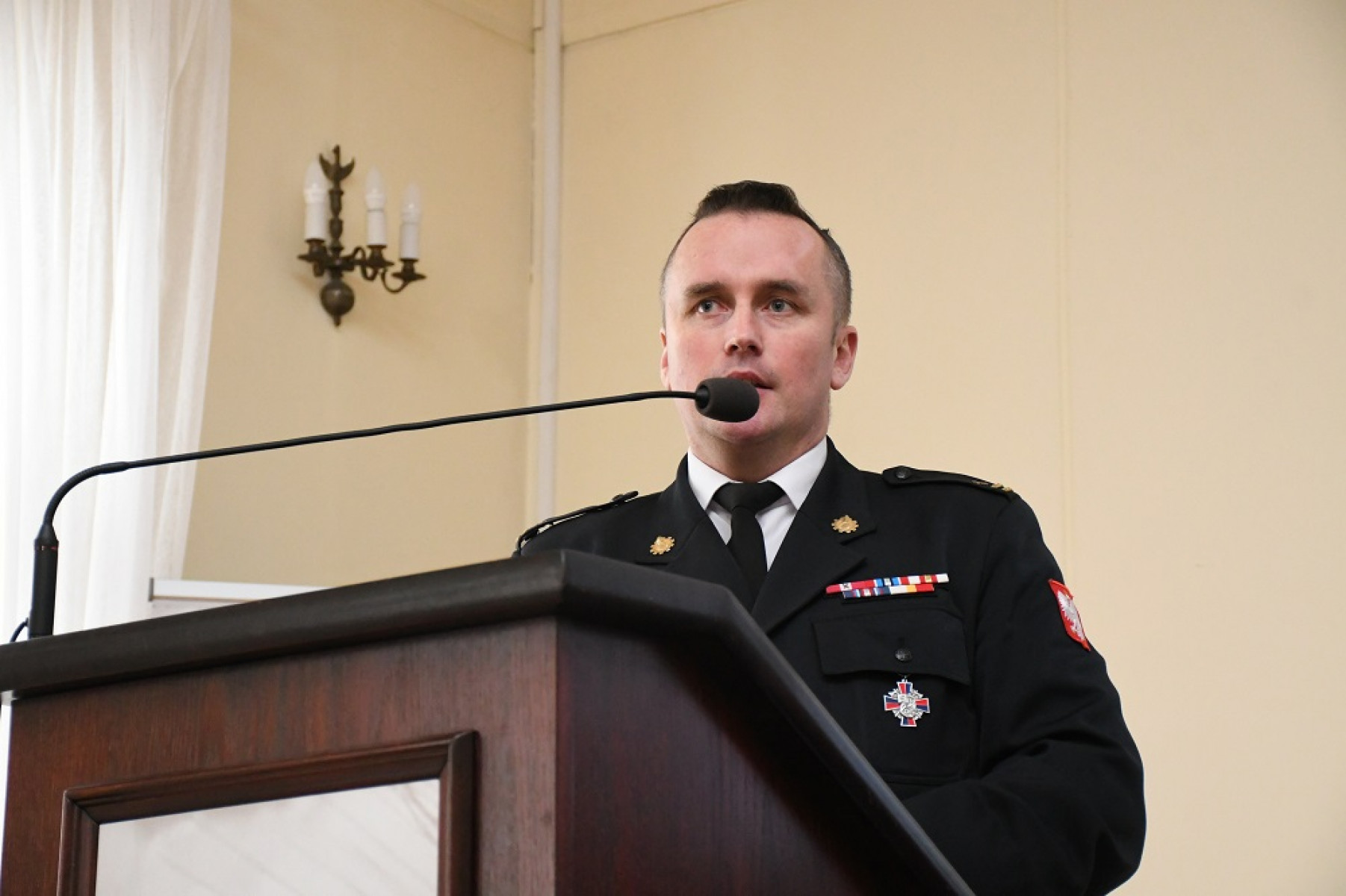 Komendant KP PSP Miechów mł. bryg. Michał Majda składa sprawozdanie z bezpieczeństwa w 2022 roku
