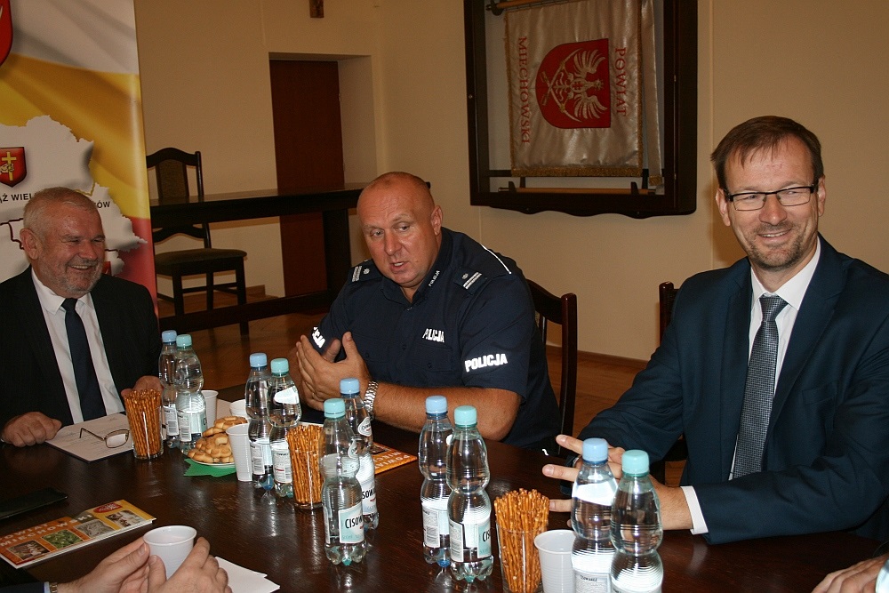 Podinsp. Tomasz Drożdżak odniósł się do sygnalizowanych problemów i wyraził nadzieję, że uda je się rozwiązywać przy dalszej skutecznej współpracy z lokalnymi samorządami. Przy okazji komendant rekomendował już wdrożoną bardzo przydatną aplikację ,,Mapa zagrożeń bezpieczeństwa w Polsce”, która również mieszkańcom i internautom w powiecie miechowskim pozwala sygnalizować różne zdarzające się zagrożenia, a policji ich weryfikowanie i likwidowanie. Szef miechowskiej policji mówił także o prowadzonych działaniach profilaktycznych wśród młodzieży szkolnej jak również o rozważaniu wprowadzenia dodatkowych patroli policyjnych w miejscach szczególnie tego wymagających, co spełniałoby postulaty samorządowców i mieszkańców. Na zakończenie spotkania komendant podziękował obecnym za pomoc w uruchomieniu nowej i nowoczesnej Komendy Policji w Miechowie, która umożliwia funkcjonariuszom jak najlepsze wykonywanie obowiązków. Starosta Marian Gamrat gratulował komendantowi awansu i życzył sukcesów w pracy w nowym terenie.