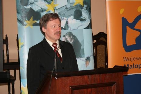 (...) ,,Modernizacja kształcenia zawodowego w Małopolsce", który będzie realizowany w latach 2010-2014. Jest to inicjatywa współfinansowana z Europejskiego Funduszu Społecznego w ramach Programu Operacyjnego Kapitał Ludzki z budżetem wynoszącym 140 mln zł. Władze województwa uznając rozwój kształcenia zawodowego za priorytet edukacyjny, zdecydowały o jego systemowym wsparciu, aby przyniósł efekt w postaci profesjonalnej kadry i sprostał wymogom rynku pracy. - Musimy zadbać, aby nie zabrakło ofert dla podstawowych, zawodowych profesji, np. hydraulika, malarza, stolarza. Nasze najbliższe działania wsparte środkami unijnymi muszą być spożytkowane na odrodzenie szkolnictwa zawodowego w Małopolsce, bowiem w wielu podstawowych zawodach brakuje wykwalifikowanych pracowników - stwierdził jednoznacznie przedstawiciel Zarządu Województwa. Obok reprezentacji obu samorządów, szefów wydziałów oświaty i szkół, na sali obecni byli przedsiębiorcy współpracujący przy praktykach zawodowych. Obradom i dyskusjom przysłuchiwali się także Zbysław Owczarski, poseł na sejm RP i Marta Wiechniak-Małek, wizytator Kuratorium Oświaty w Krakowie. - Mam nadzieję, że stworzymy takie sposoby szkolenia i egzaminowania, aby przywrócić właściwą rangę szkoleniu zawodowemu. Nie wszyscy bowiem mogą być humanistami - zauważył starosta Mieczysław Bertek we wstępie do zasadniczych obrad.