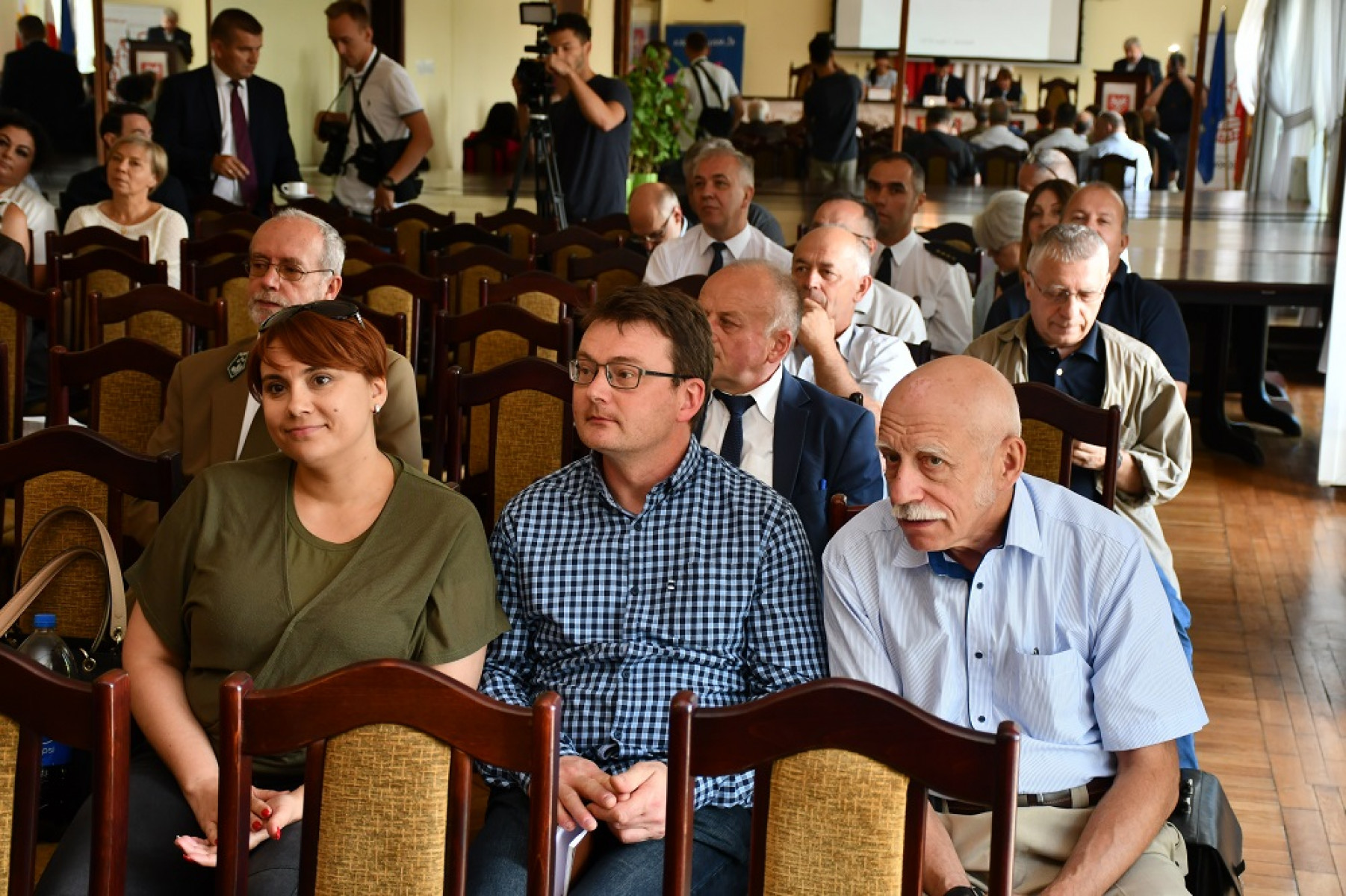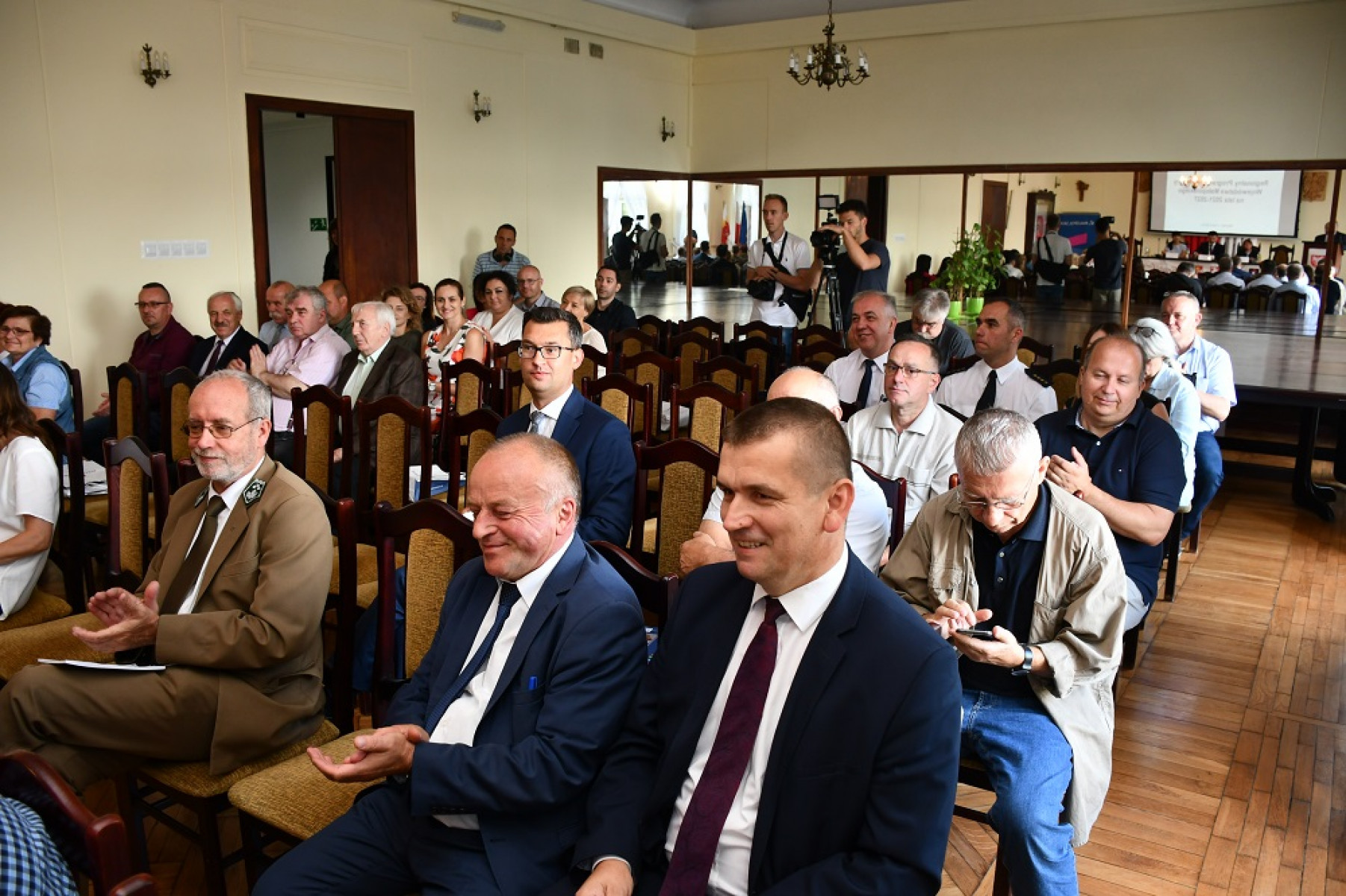 Na pierwszym planie samorządowcy z powiatu proszowickiego (od prawej) - wójt Radziemic Marek Słowiński, starosta proszowicki Grzegorz Pióro