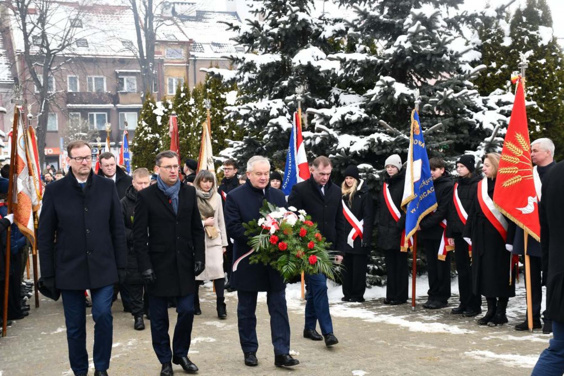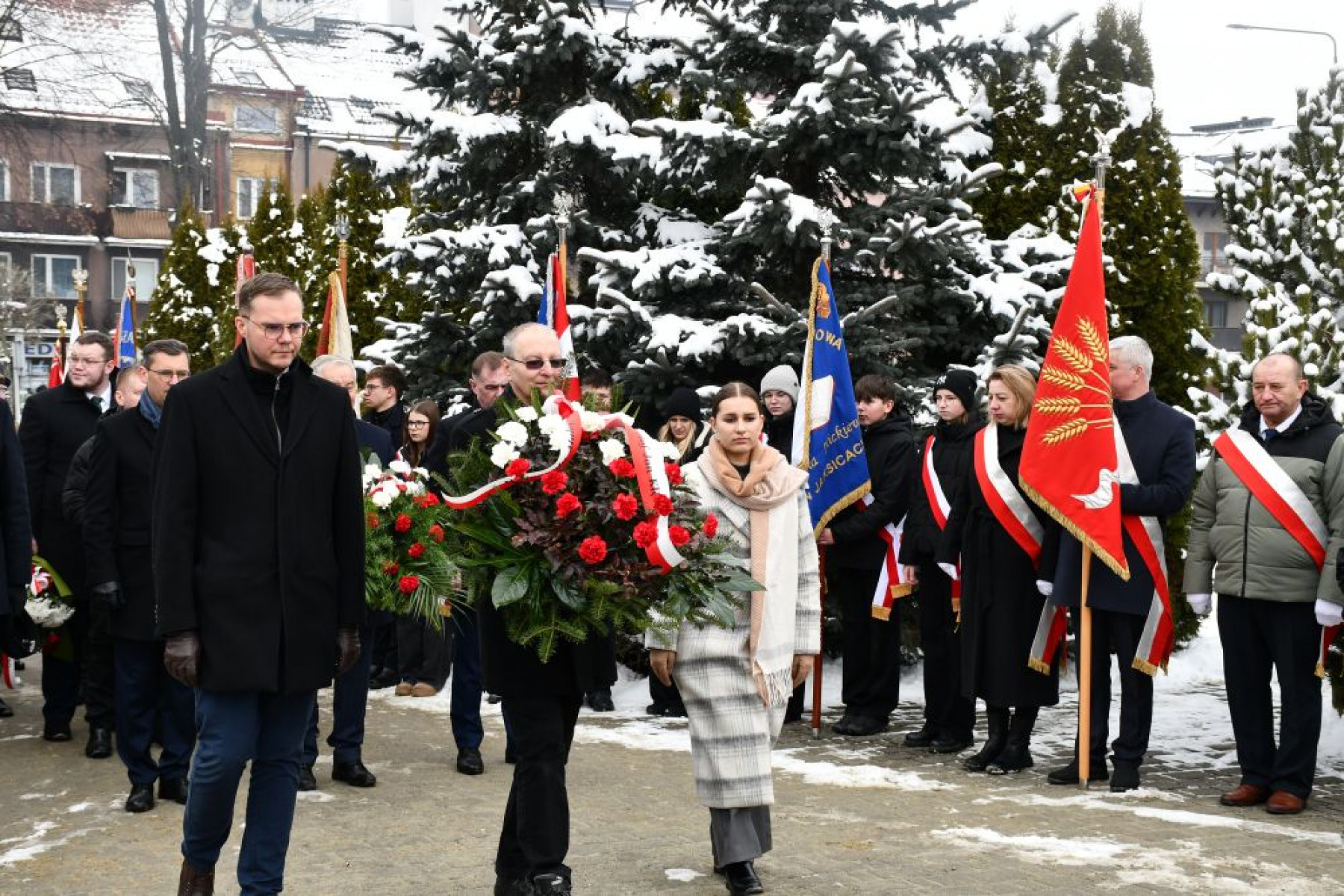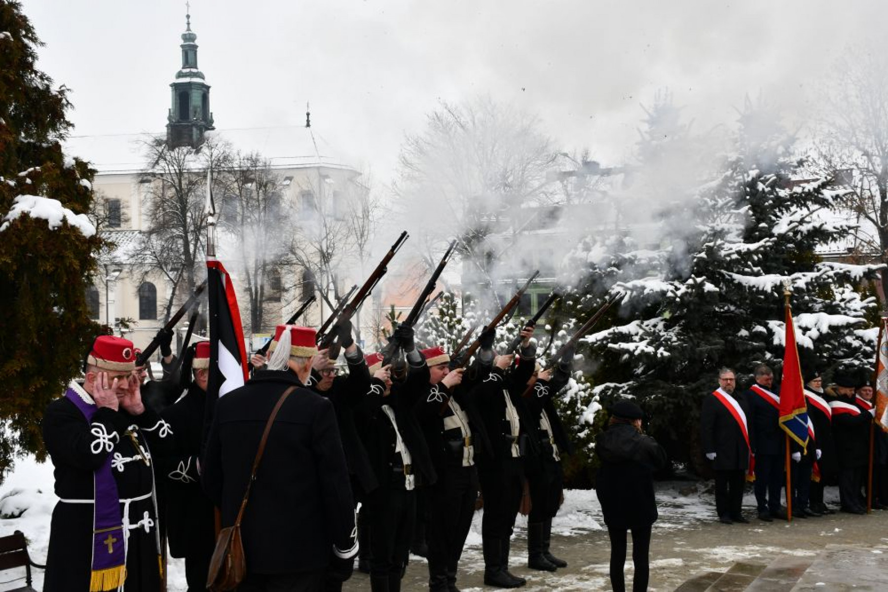 W uroczystościach na zaproszenie Starosty Powiatu Miechowskiego - Krzysztofa Świerczka oraz Burmistrza Gminy i Miasta Miechów - Dariusza Marczewskiego udział wzięli m.in.: Poseł na Sejm RP - Andrzej Adamczyk, Dyrektor Biura Wojewody Małopolskiego - Łukasz Krzysztofik, Rady Sejmiku Województwa Małopolskiego - Mirosław Dróżdż, Wicestarosta Powiatu Miechowskiego - Jerzy Pułka, Radni Powiatowi - Sylwia Suchecka, Jacek Podsiadło i Radny-elekt Zdzisław Tabor. Przybyli goście złożyli kwiaty przy mogile powstańczej na cmentarzu oraz przy Pomniku z Orłem na Rynku Głównym w Miechowie upamiętniając tym samym jedno z największych w historii regionu starć.