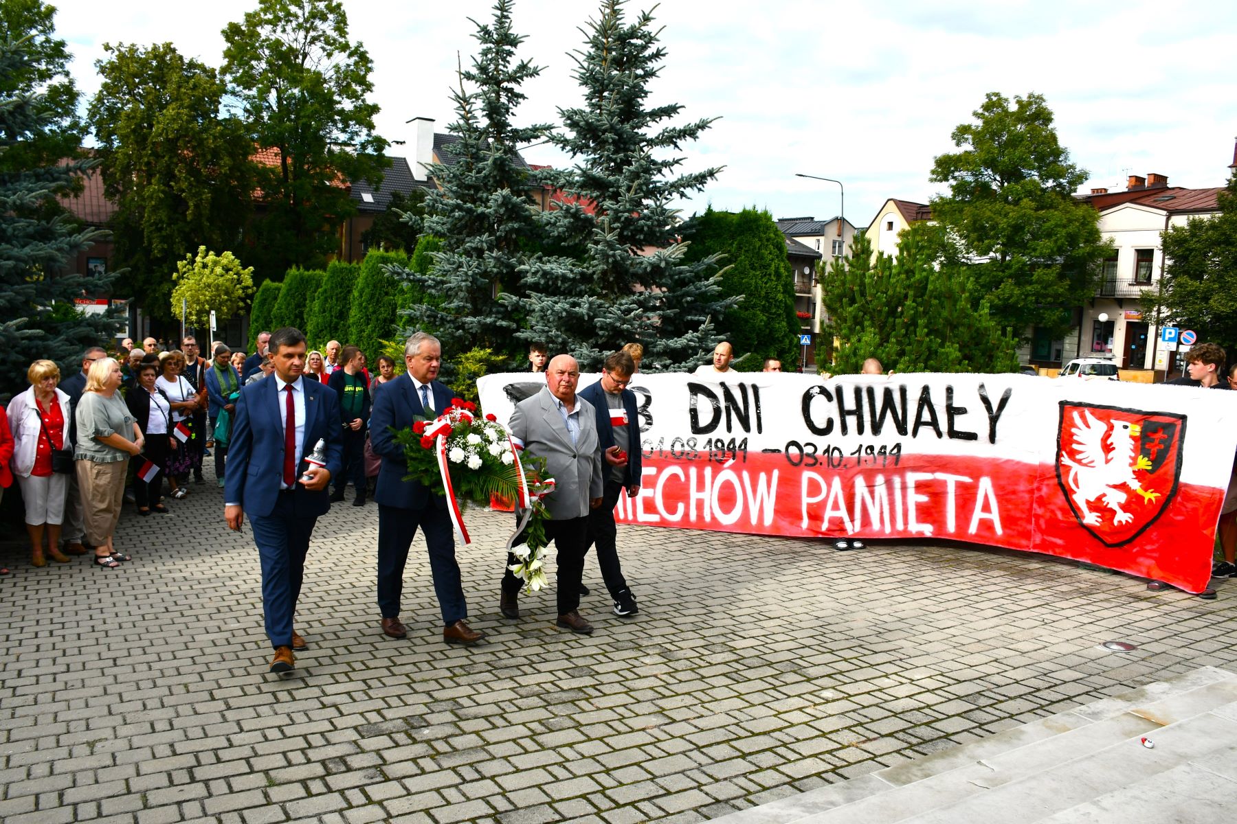 Starosta Powiatu Miechowskiego po złożeniu kwiatów pod Pomnikiem z Orłem wygłosił przemówienie, w którym zaznaczył, że Powstanie Warszawskie było czymś znacznie większym niż kolejną bitwą II wojny światowej. Pamięć o tym historycznym wydarzeniu jest niezwykle istotna, gdyż Powstanie to było jednym z najważniejszych momentów w historii naszego kraju.