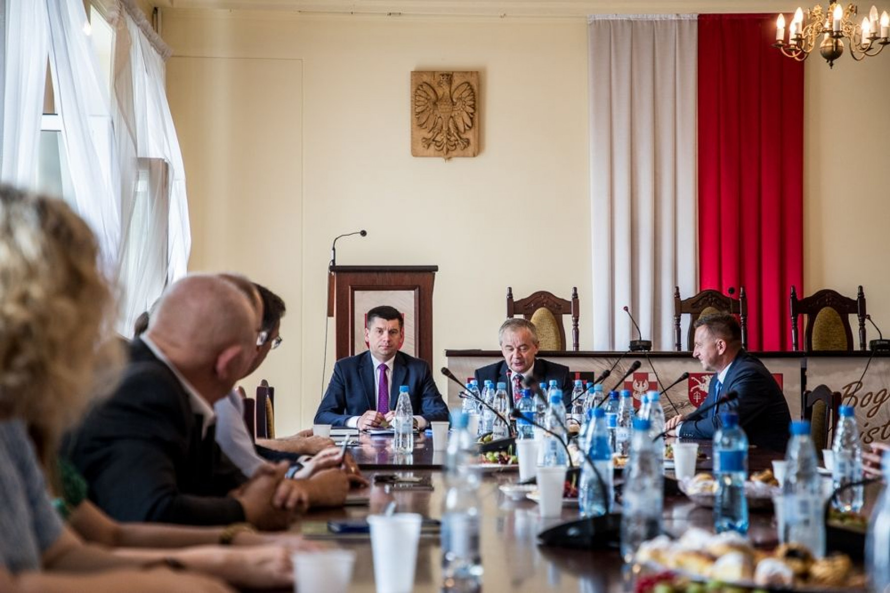 Wicemarszałek Łukasz Smółka na spotkaniu z samorządowcami Powiatu Miechowskiego