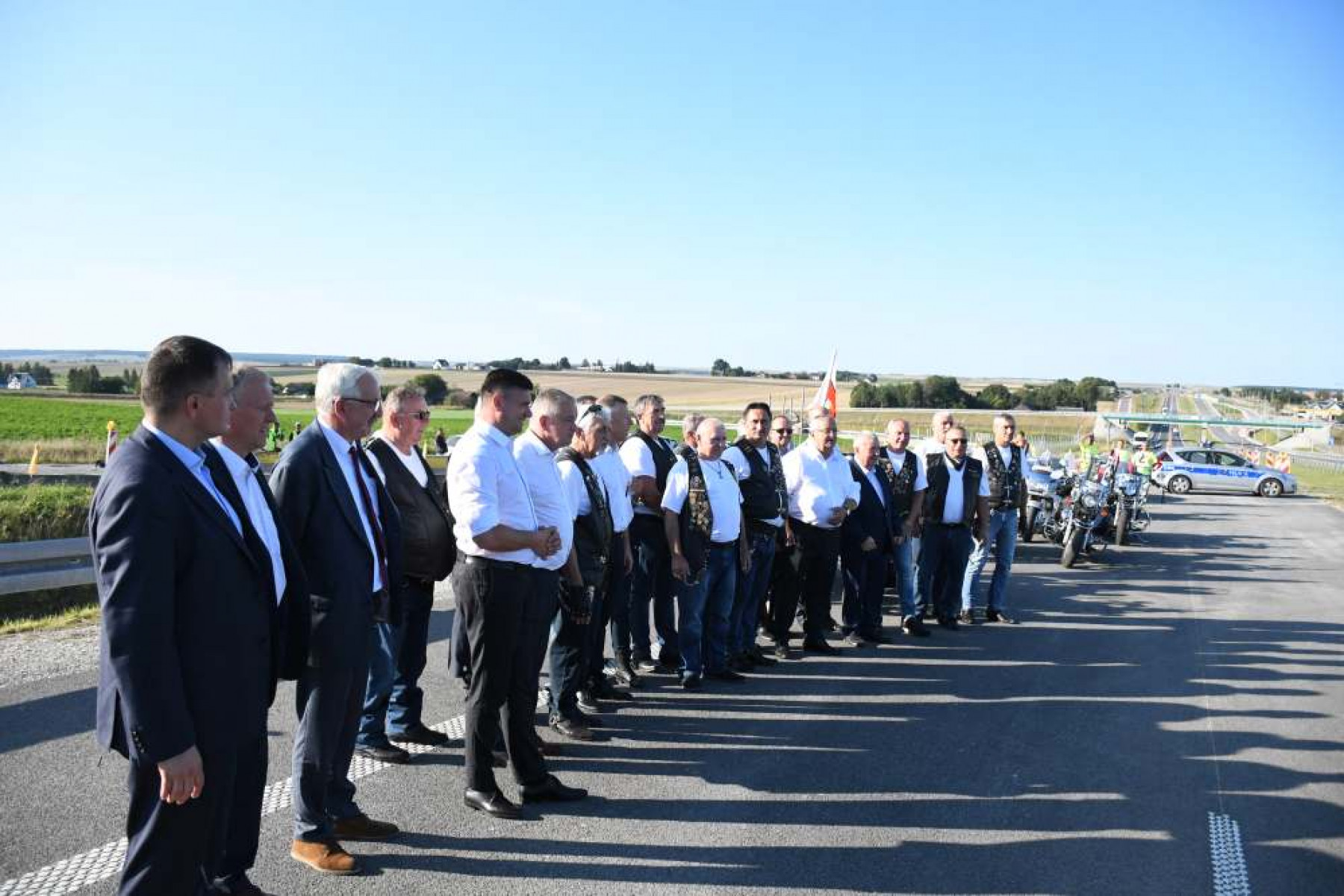 Pamiątkowa fotografia z motocyklistami przed otwarciem S7 w Moczydle
