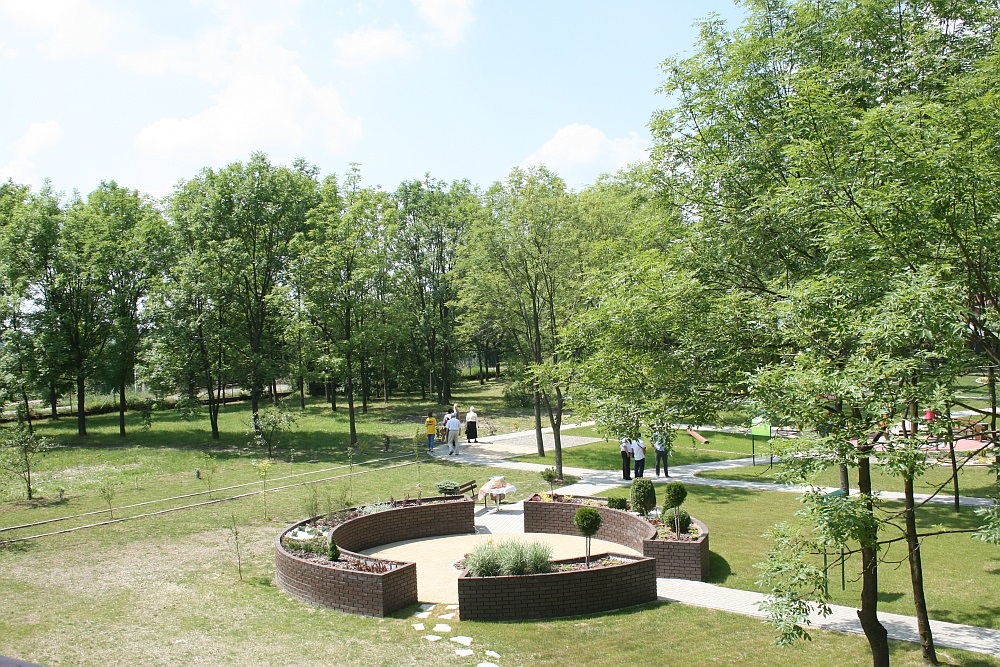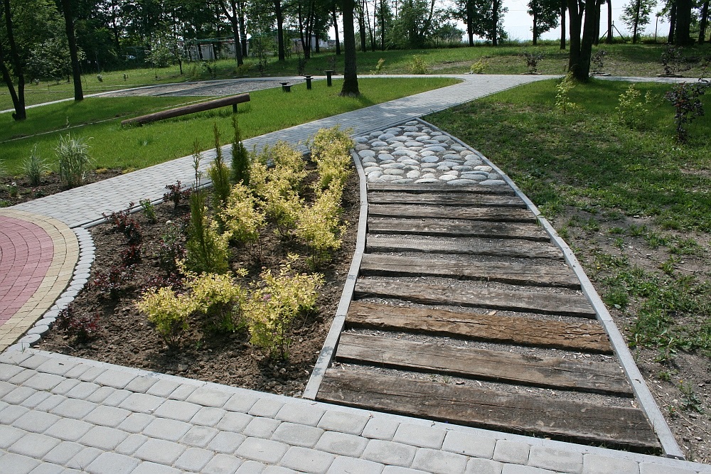 W efekcie na powierzchni 0,8 ha powstał pięknie zagospodarowany teren, który, jak czytamy w przewodniku - „jest wyjątkowym miejscem doświadczania świata w naturze. Obejmuje pięć ogrodów tematycznych, a każdy ma pobudzać różne zmysły. Odpowiednio skomponowane zestawienia roślin mają za zadanie wysyłanie bodźców stymulujących narządy zmysłu i ośrodkowy układ nerwowy”. Są więc Ogrody Dotyku, Smaku (Sad Owocowy), Kolorów, Zapachu i Dźwięków, w których nasze zmysły „atakowane” są zapachami, barwami, kształtami i smakami przez różne gatunki roślin, krzewów, kwiatów, pędów i traw. Dopełniająca ten krajobraz Ścieżka Sensoryczna zróżnicowana jest pod względem podłoża i nawierzchni (faktur). Całość parkowego założenia oplata sieć alejek i niewielkich rond, przy których są ławki, miejsca do grillowania, gier zespołowych i zabaw oraz miejsca do kontemplacji. Zamontowano również urządzenia do rekreacji i ćwiczeń fizycznych. - Cieszę się, że moja idea doczekała się realizacji, chociaż wielu powątpiewało w jej sukces. To miejsce jest szczególnie przydatne dla pensjonariuszy tutejszego domu, bowiem wpływa pozytywnie na całościowy proces ich rehabilitacji. Niezależnie od tej funkcji nasz park jest dostępny dla wszystkich miłośników piękna i ciszy – mieszkańców Miechowa, powiatu i gości. Ma dostarczać radość i energię – mówi nie bez dumy dyrektor Małgorzata Wachacka.