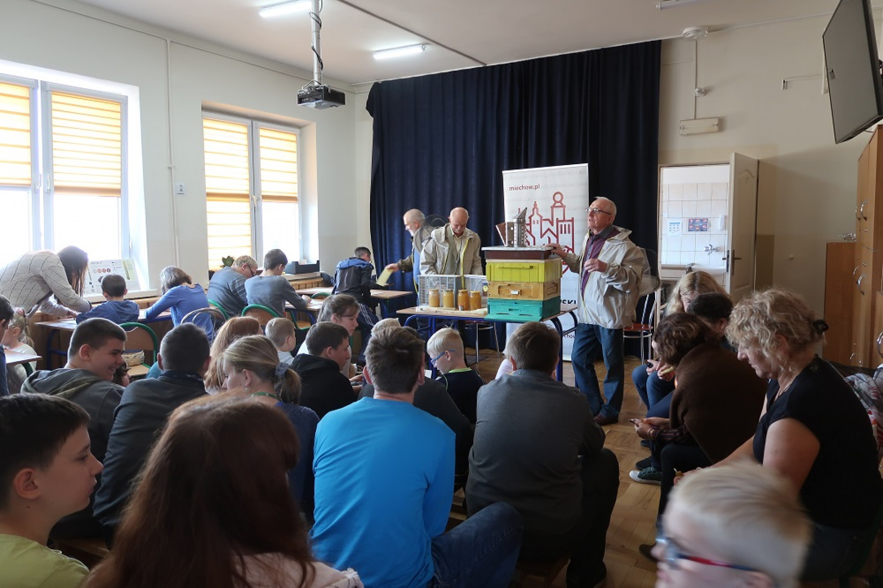 Okazało się, że te małe owady są niezwykle pożyteczne. Zawdzięczamy im wytworzenie tak wielu cennych produktów, które mają zastosowanie w lekarstwach, kosmetykach i spożywanych przez nas posiłkach. O ich zwyczajach, hierarchii i zasadach prowadzenia pasieki, opowiadali: Jerzy Franczyk - prezes Powiatowego Koła Pszczelarzy oraz Leonard Mazur, naczelnik Wydziału Oświaty, Kultury i Sportu Starostwa Powiatowego w Miechowie i Zdzisław Gajos.