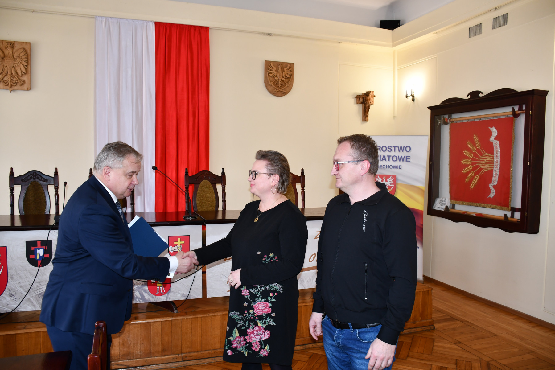 We wtorek 25 marca w Sali Konferencyjnej Starostwa Powiatowego w Miechowie Starosta Miechowski - Krzysztof Świerczek wręczył dofinansowania na łączną kwotę 168 000, 00zł dla organizacji pozarządowych na realizacje zadań publicznych odbywających się na terenie powiatu miechowskiego.