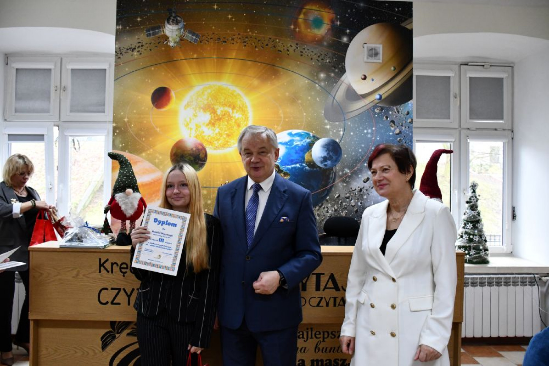 W czwartek 11 grudnia w miechowskim Zespole Szkół nr 1 miało miejsce otwarcie Biblioteki Szkolnej oraz finał konkursu czytelniczego i plastycznego pt. Moja ulubiona książka. W wydarzeniu Powiat Miechowski reprezentowali Starosta Krzysztof Świerczek oraz Członek Zarządu Powiatu Piotr Grządziel.