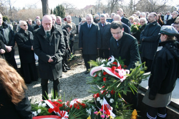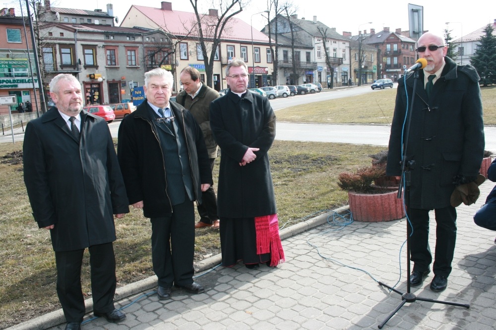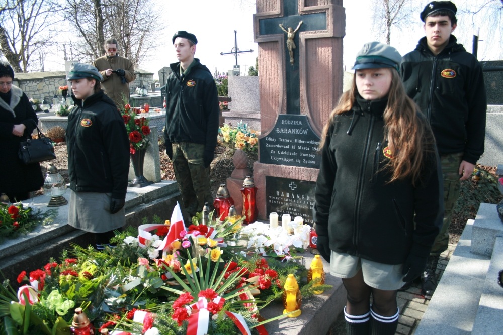 15 Marca 2012(...) Tak było w przypadku rodziny Baranków ze Siedlisk k/Miechowa, którzy 15 marca 1943r. zostali rozstrzelani razem z czterema ukrywanymi przez siebie Żydami. Śmierć ponieśli: Łucja Baranek z d. Skucha, mąż Wincenty Baranek, synowie Henryk (12 lat) i Tadeusz (10 l.) oraz teściowa Katarzyna Baranek. Uroczystości upamiętniające 69. rocznicę tej zbrodni rozpoczęła Msza św. w kościele św. Barbary na miechowskim cmentarzu. - Nie ma większej miłości, niż ofiara życia za innych ludzi - powiedział w homilii ks. Karol Stach, Oficjał Sądu Biskupiego w Kielcach. Następnie kolumna uczestników - duchownych, liczna grupa krewnych rodziny Baranków, władz miasta i powiatu na czele z burmistrzem i starostą, gości z Warszawy, Kielc i Krakowa oraz harcerzy i uczniów klasy mundurowej ZS w Książu Wielkim - udała się na miejsce spoczynku pomordowanych, gdzie wspólnie modlono się w intencji bohaterskiej rodziny, złożono kwiaty, zapalono znicze. Kolejna część uroczystości miała miejsce w Rynku. Tutaj dokonano otwarcia plenerowej wystawy pn. "Polacy ratujący Żydów w czasie Zagłady. Pomoc Polaków dla ludności żydowskiej w Małopolsce w latach 1939-45 ", będącej zestawem fotokopii dokumentów i zdjęć pokazujących pogrom społeczności żydowskiej. Ekspozycję przygotował Oddział Instytutu Pamięci Narodowej w Rzeszowie przy pomocy Oddziału IPN w Krakowie. Prezes krakowskiej placówki dr Marek Lasota nawiązując do idei wystawy powiedział, że rodzina Baranków i jej podobne, w czasie wojennego terroru nie wahały się zaryzykować ukrywając Żydów, dając tym samym dowód najwyższej odwagi. Z kolei w Miechowskim Domu Kultury miała miejsce prezentacja monet wyemitowanych przez Narodowy Bank Polski, poświęconych bohaterskim rodzinom Baranków, Ulmów i Kowalskich. Przedstawiciele krewnych ww. rodzin i osoby odznaczone Medalem Sprawiedliwi Wśród Narodów Świata z Miechowa i Siedlisk zostali przez Eugienusza Gatnara, członka Zarządu NBP obdarowani pamiątkowymi numizmatami. - To dowód naszego uznania dla bohaterskich rodzin, które w czasie bestialskiego terroru zachowały człowieczeństwo - oznajmił gość. Na zakończenie uroczystości szef krakowskiego IPN przekazał dla szkół z gminy Miechów publikacje dot. martyrologii Polaków i Żydów. Miechowska uroczystość została zorganizowana dzięki współpracy Oddziałów IPN w Krakowie i Rzeszowie, Oddziału Okręgowego NBP w Krakowie i Burmistrza Gminy i Miasta Miechów oraz Stowarzyszenia Miłośników Odnowy Zabytków i Urzędu Pocztowego w Miechowie.
