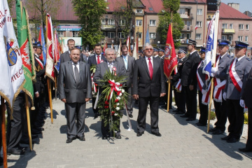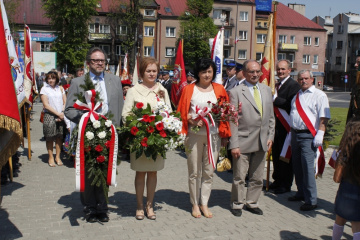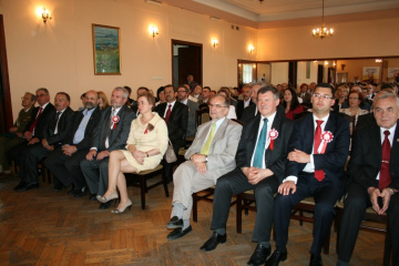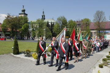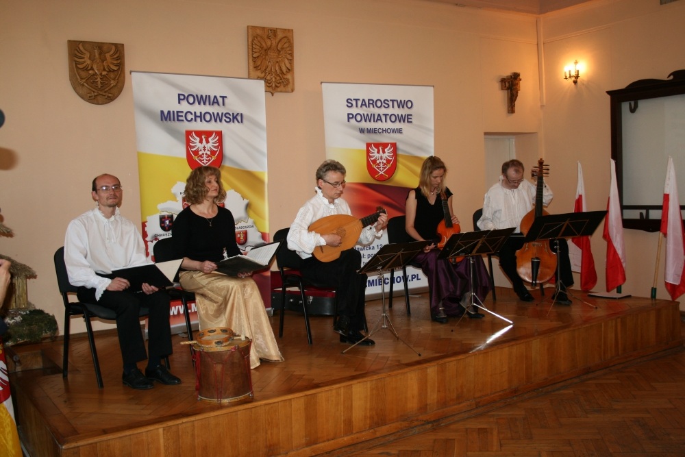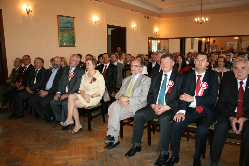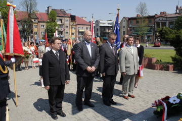 4 Maja 2012(...) Liturgię dla licznie zgromadzonych gości i miechowian celebrował ks. dr. Andrzej Boksiński. Długa kolumna uczestników prowadzona przez asp.sztab. Mirosława Grędę, poprzedzona orkiestrą dętą "Sygnał” i pocztami sztandarowymi samorządów, zakładów pracy, szkół, organizacji, stowarzyszeń, okrążyła Rynek, by zebrać się przez obeliskiem z Orłem, upamiętniającym ważne wydarzenia z historii walk o niepodległość ziemi miechowskiej i Polski. Po odegraniu hymnu państwowego i dźwiękach werbla uczestnicy święta złożyli wieńce i kwiaty. Następnie zebrani przeszli do budynku Starostwa Powiatowego w Miechowie, gdzie miało miejsce tradycyjne okolicznościowe spotkanie. W części artystycznej wystąpił Zespół Muzyki Dawnej "Camerata Cracovia” kierowany przez Ireneusza Trybulca. Artyści wprowadzili słuchaczy w klimat epoki i wykonali kilka utworów muzyki dawnej (XVI/XVIIw.) posiłkując się kopiami starych instrumentów. Zebranych witał starosta Marian Gamrat. Swoją obecnością miechowskie obchody 3 – majowe zaszczycili: senator Bogdan Pęk, posłowie Lidia Gądek i Józef Lassota, radny wojewódzki Adam Domagała i gen. broni Jerzy Wójcik. Obecni był również: przewodniczący Rady Powiatu Marian Brodowicz, wicestarosta Bogdan Miś, Dariusz Marczewski, burmistrz Gminy i Miasta Miechów, radni obu szczebli, dyrektorzy i kierownicy zakładów pracy, placówek oświatowych i kulturalnych, kombatanci. "Kto Ojczyźnie służy, sam sobie służy” – te słowa ks. Piotra Skargi były mottem okolicznościowego wystąpienia starosty, który przypomniał o ponadczasowych wartościach zapisów Konstytucji 3 maja, ale także o ich przydatności dla obecnego pokolenia Polaków. – Ten dzień to wbrew pozorom nie tylko relaks, szansa na miłe spędzenia czasu na majówce, ale okazja, by poczuć się naprawdę obywatelem naszego państwa i zrozumieć, że Polskę tworzymy my wszyscy, także tutaj w Miechowie - . Podobnie jak w poprzednich latach z okazji święta starosta przyznał nagrodę pn. Przyjaciel Powiatu. W tym roku jej laureatem został lek. med. Marian Tambor, współorganizator Szpitala św. Anny w Miechowie, jego wieloletni dyrektor (27 lat) i ordynator Wydziału Chirurgii (22 lata). Statuetkę w kształcie wieży bazyliki Grobu Bożego w Miechowie doktor otrzymał za działania na rzecz uruchomienia szpitala, jego organizację, wieloletnie kierowanie placówką, pracę chirurga, tworzenie ratownictwa medycznego oraz promocję zdrowia wśród mieszkańców miasta i powiatu.