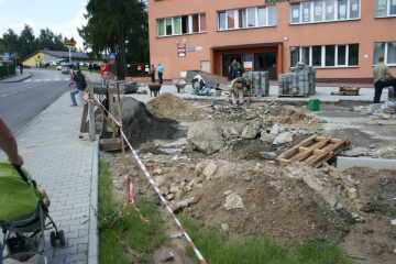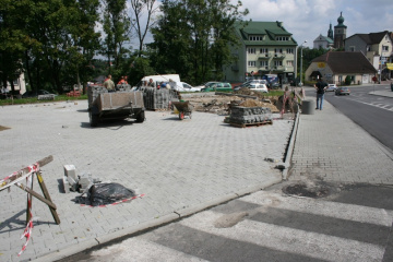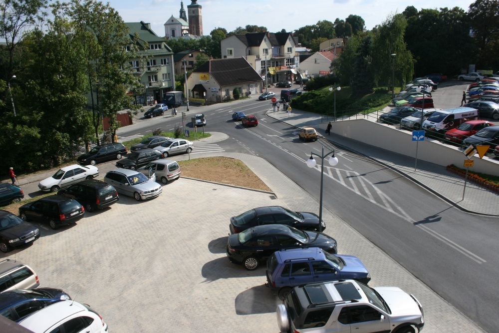 8 Września 2011Plac wyłożono kostką brukową, otoczono krawężnikami, wykonano wjazd i wyjazd od niedawno zmodernizowanej ul. Daneckiej, zamontowano nowe oświetlenie nawiązujące do już istniejącego w tym miejscu, poprawiono schody od strony północnej, wykonano odwodnienie i uporządkowano otoczenie siejąc trawę. Konieczne roboty wykonała firma ,,Elmed" sp.j. - Sławomir Kwapień z Miechowa. Koszt inwestycji wyniósł 40.000 zł. Inwestorem zadania był powiat miechowski, ale do współfinansowania prac włączyły się lokalne oddziały banków - PKO BP i Krakowski Bank Spółdzielczy. W wyniki ,,liftingu" (m.in. likwidacji starej wysepki oświetleniowej) na przebudowanym parkingu może pomieścić się do 20 samochodów osobowych. W efekcie licznie uczęszczane miejsce odzyskało funkcjonalność i estetykę, a klienci wydziałów architektury, komunikacji i oświaty Starostwa Powiatowego oraz banków mają ułatwiony dostęp do tych instytucji.