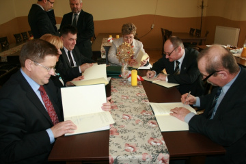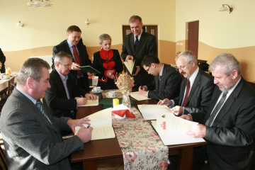 26 Stycznia 2012(...) 24 stycznia br. zostało podpisane ,,Porozumienie w sprawie zawarcia partnerstwa na rzecz realizacji celów zawartych w ,,Strategii łagodzenia skutków bezrobocia w powiecie miechowskim na lata 2012-16". Podpisy pod dokumentem złożyli: starosta, burmistrz i wójtowie gmin, przewodniczący Powiatowej Rady Zatrudnienia Czesław Mardaus, kierownik PCPR Helena Kruszec, starszy Cechu Rzemiosł Różnych Jerzy Borowski, dyrektor Ośrodka Kształcenia Zawodowego Ewa Kowalczyk - Uchto, Marek Puto - właściciel PHU ,,Auto-Mark" w Książu Wielkim i Daniel Dziewit - właściciel BDM Group w Bielsku Białej. Zawarte porozumienie zostało poprzedzone listem intencyjnym w powyższej sprawie, zaakceptowanym przez sygnatariuszy w listopadzie 2011r., zaś sama Strategia została przyjęta stosowną uchwałą Rady Powiatu miesiąc później. W myśl podpisanego dokumentu liderem i koordynatorem partnerstwa będzie PUP w Miechowie. Partnerstwo będzie realizowało wyznaczone cele w oparciu o : dialog i wzajemne konsultacje, zaangażowanie środków niezbędnych do realizacji działań zawartych w strategii, wykorzystanie potencjału, fachowości, umiejętności i doświadczenia partnerów oraz tworzenie skutecznej koordynacji prac. Strony partnerstwa będą również ponosić wspólną odpowiedzialność za prawidłową realizację podjętych działań. - To jest realizacja wcześniej przyjętej powiatowej strategii przeciwdziałania bezrobociu. A jednym z jej elementów jest zawiązanie partnerstwa na czas nieokreślony. Mam nadzieję, że partnerzy będą efektywnie działać i współpracować, co da oczekiwane efekty - powiedziała Anna Frączkiewicz, dyrektor miechowskiego PUP i dodała, że grupa partnerska ma formę otwartą i może być powiększona.