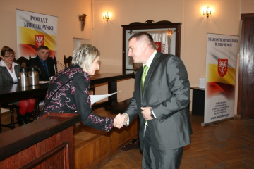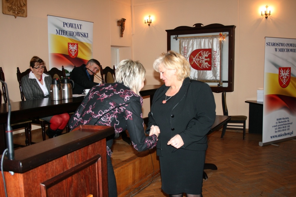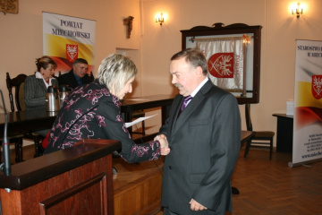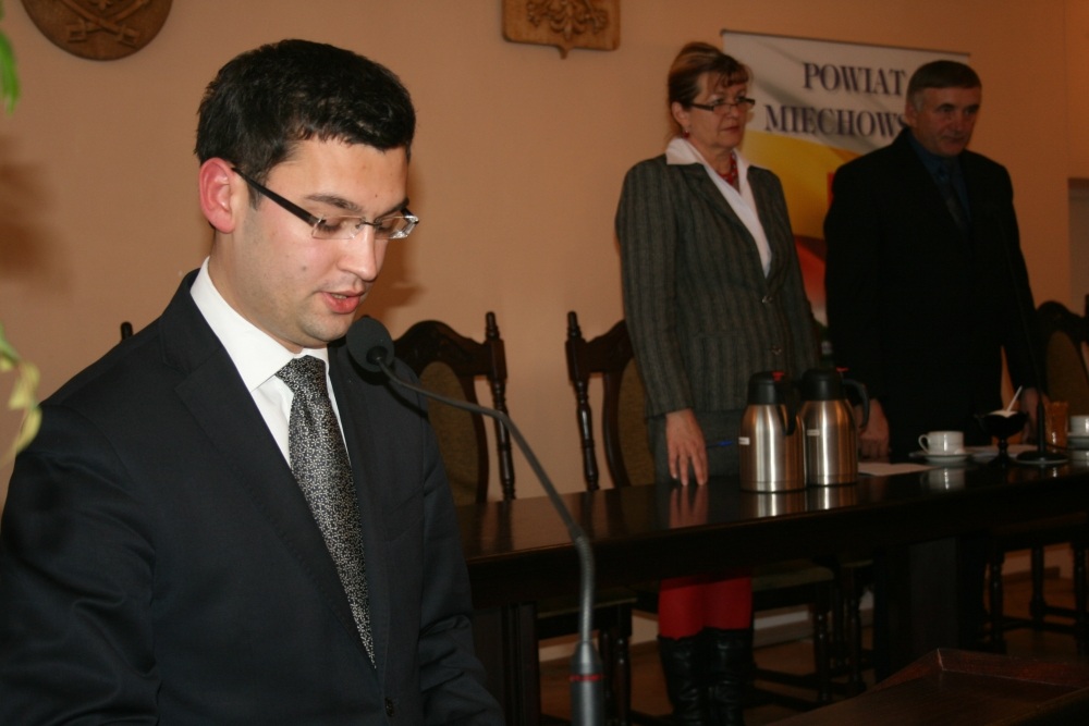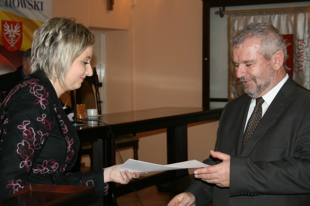 Dwa kolejne punkty sesji dotyczyły procedur związanych z wyłonieniem nowego kierownictwa samorządu powiatowego. Nad ich prawidłowością czuwała Maria Sztuk, sekretarz powiatu. Powołano 5-osobową komisję skrutacyjną pod przewodnictwem radnej Marii Orłowskiej. Na stanowisko przewodniczącego Rady Powiatu zgłoszono 1 kandydata – radnego Mariana Brodowicza, właściciela gospodarstwa rolnego w Boczkowicach z gm. Książ Wielki, który w wyniku głosowania tajnego, bezwzględną większością głosów został wybrany szefem rady kadencji 2010- 2014. Dalszą część obrad prowadził już nowy przewodniczący. W pracy wspomagać go będą dwie wiceprzewodniczące, radne Regina Siudak i Ewa Wojciechowicz, wybrane w tym samym trybie. Na tym zakończono I sesję nowej Rady Powiatu Miechowskiego.