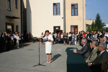 Po wprowadzeniu sztandaru szkoły i wysłuchaniu hymnu państwowego gości, nauczycieli i młodzież witała dyrektor Marzena Samborska, która m.in. przypomniała wyniki egzaminu maturalnego i zawodowego. W tej najliczniejszej szkole powiatowej w nowym roku szkolnym w 36. oddziałach naukę będzie pobierać 880 uczniów i słuchaczy, w tym 187 pierwszoklasistów, pod kierunkiem 67 pedagogów. Na uroczystości nie zabrakło akcentu wrześniowego - historię tragicznych wydarzeń sprzed 72. lat przypomniała prof. Katarzyna Mucha.