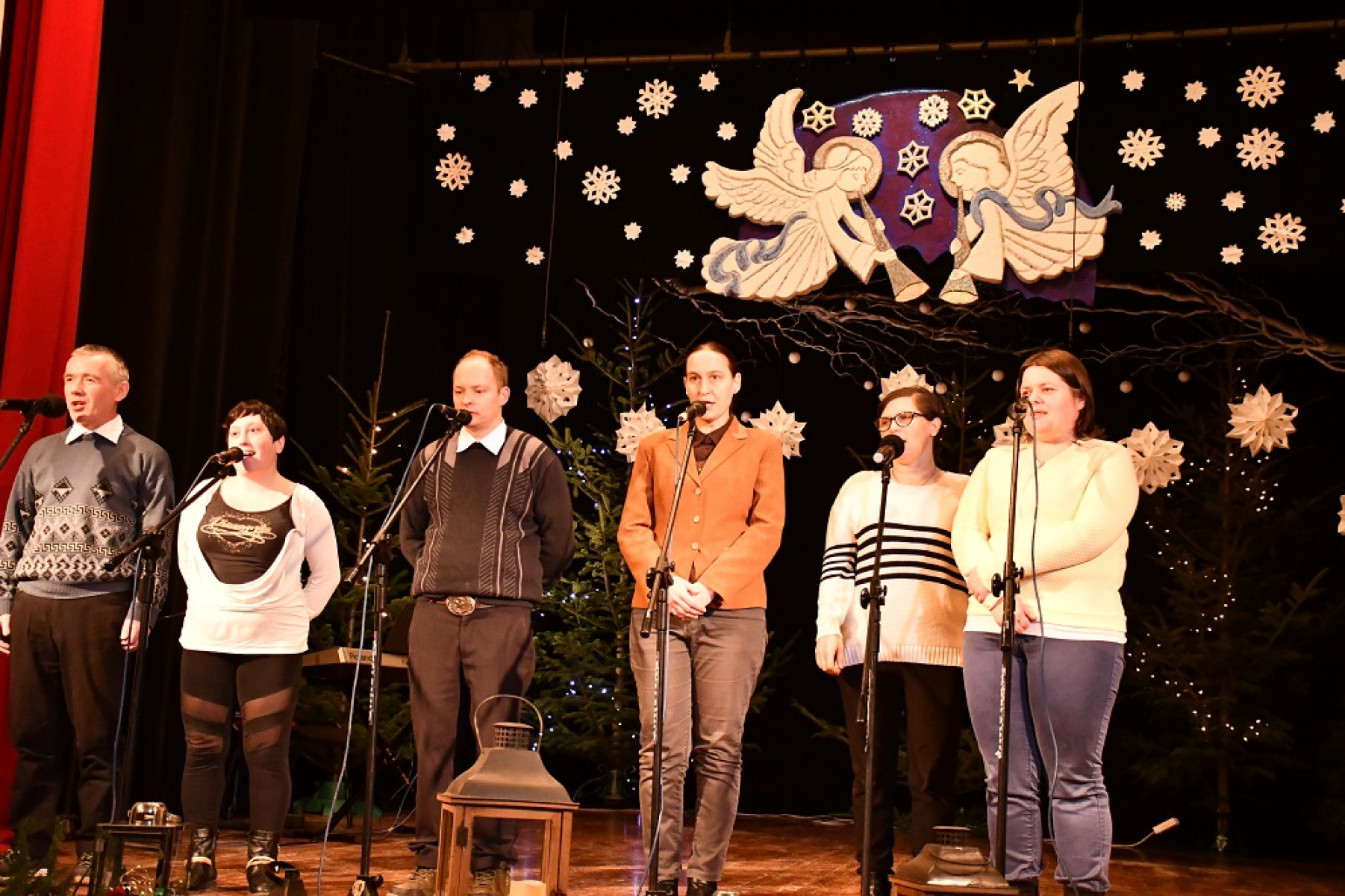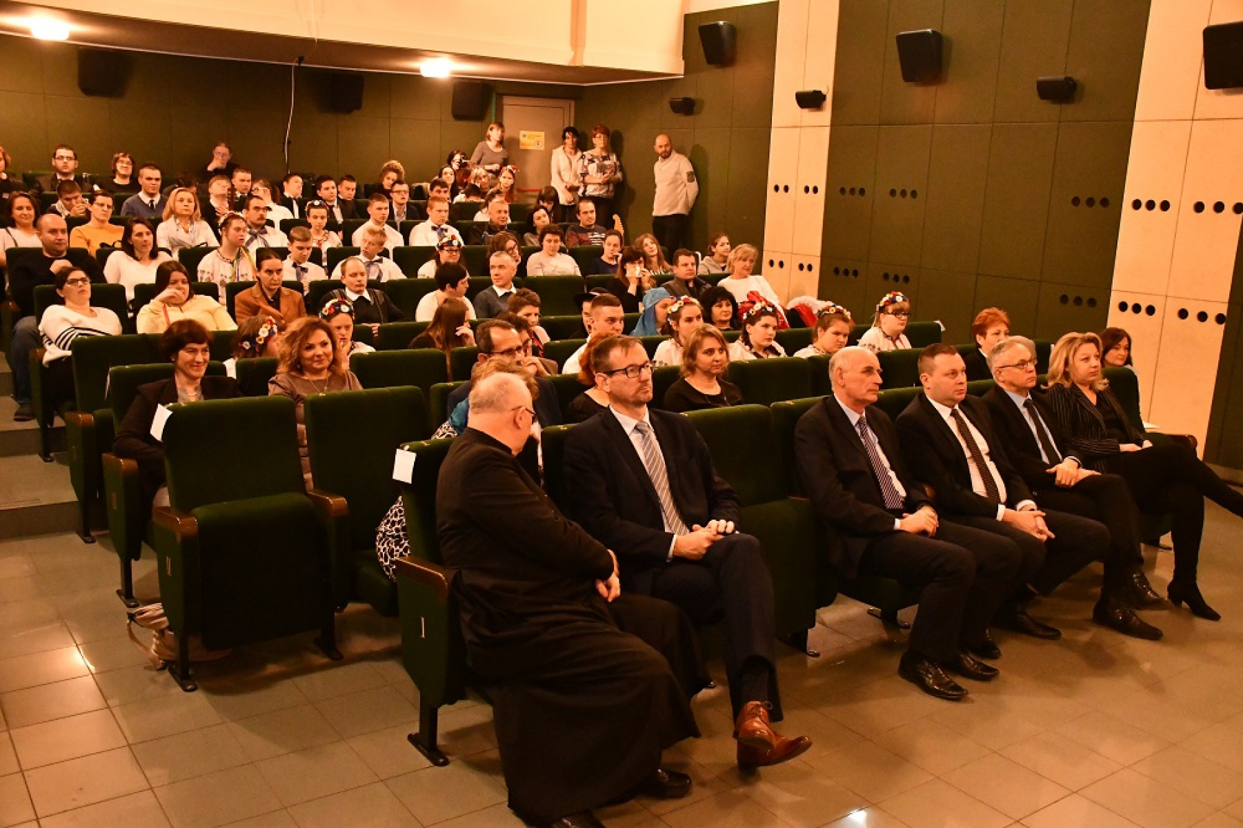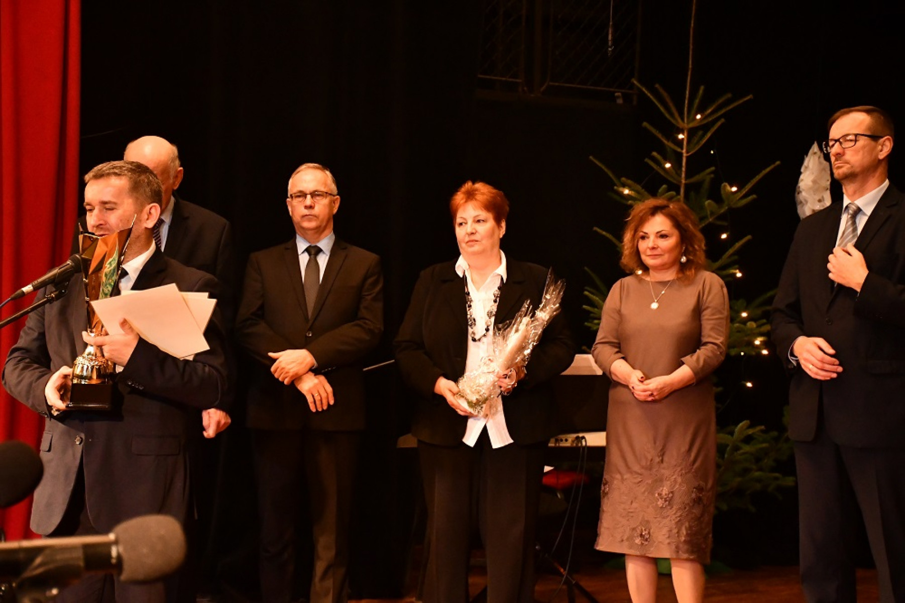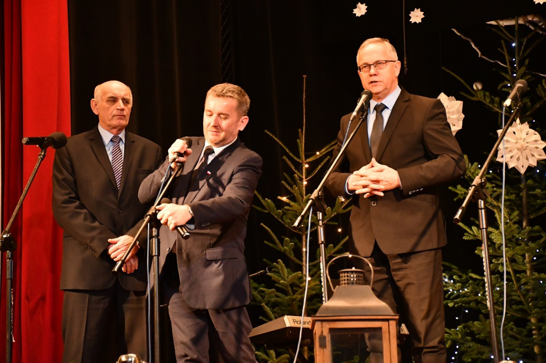 Pięknym, refleksyjnym i pełnym zaangażowania występom przysłuchiwali się m.in. samorządowcy Powiatu Miechowskiego: członek Zarządu - Wojciech Domagała, wiceprzewodniczący Rady - Jan Biesaga, Stanisław Krawiec, radni - Sylwia Suchecka, Adam Motyka, wizytator Kuratorium Oświaty - Mirosława Malmon, dyrektorzy szkół i różnych instytucji, a także wiceburmistrz Miechowa Andrzej Banaśkiewicz, wicewójt Książa Wielkiego Grzegorz Janus i przedstawiciele pozostałych włodarzy gmin powiatu, którzy ufundowali puchary dla uczestników przeglądu. Ze sceny odczytano także listy z życzeniami świątecznymi od Pani Prezydentowej oraz Wojewody Małopolskiego Piotra Ćwika. Konferansjerami przeglądu byli Zbigniew Łojewski i Krystian Jaźwiec, który w niezwykle przejmujący i urokliwy sposób angażował i zabawiał publiczność.