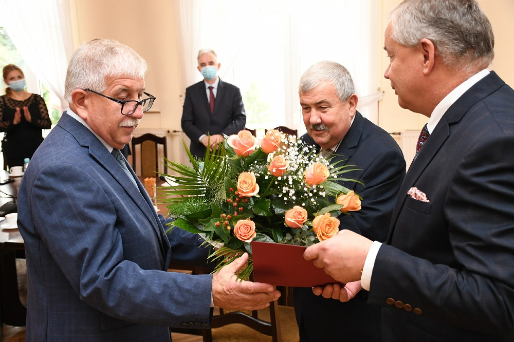Zanim jednak radni zapoznali się z informacją o sytuacji na rynku pracy w Powiecie Miechowskim i działaniach podjętych przez Powiatowy Urząd Pracy w celu łagodzenia skutków bezrobocia, Starosta Miechowski Jacek Kobyłka z Przewodniczącym Rady Krzysztofem Świerczkiem podziękowali Zygmuntowi Drożdżowi, emerytowanemu już dyrektorowi Liceum Ogólnokształcącego im. Tadeusza Kościuszki w Miechowie, za jego długoletnią, pełną zaangażowania i owocną pracę.