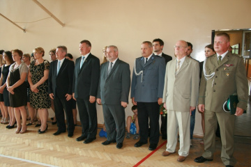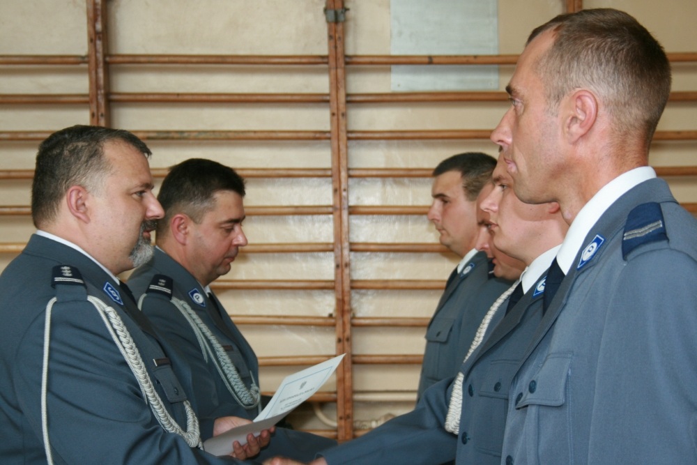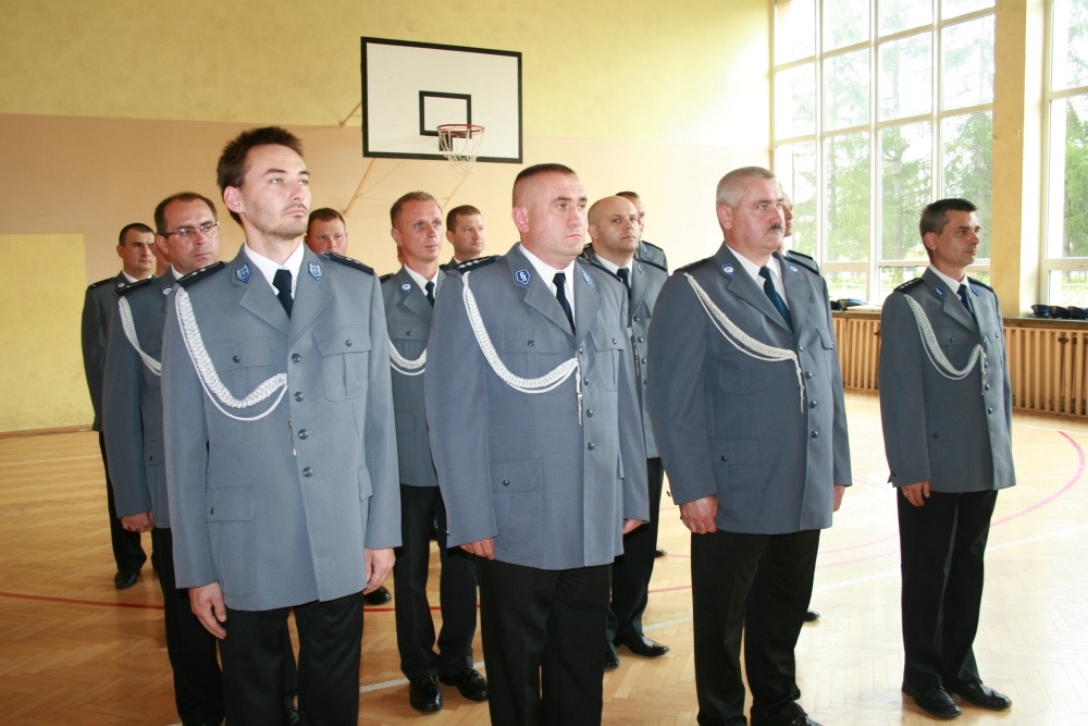 – Nasza służba to niełatwy kawałek chleba – stwierdził mł. insp. Bogusław Słupczyński, komendant powiatowy policji w Miechowie w okolicznościowym wystąpieniu. Przypomniał, że policjanci z powiatu miechowskiego dali się poznać jako profesjonaliści podczas EURO 12 wspomagając swych kolegów z kraju. Komendant nawiązał także do planów budowy w grodzie Jaksy nowej siedziby komendy jednostki, którą być może uda się otworzyć w 2015r. W licznym szpalerze gości znaleźli się: insp. Marek Woźniczka, I zastępca małopolskiego komendanta wojewódzkiego policji, Adam Domagała, radny wojewódzki, starosta Marian Gamrat, wiceburmistrz i wójtowie gmin powiatu, przedstawiciele lokalnej prokuratury i sądu, zawodowej straży pożarnej i Służby Granicznej. Wicekomendant wojewódzki policji nawiązał do historii polskiej policji. Podkreślił, że o wysokiej pozycji miechowskich policjantów wśród komend małopolskich zdecydowały: profesjonalizm i zespołowe działanie. W głównym momencie uroczystości awanse na wyższe stopnie otrzymali: starszego aspiranta: Zbigniew Bieliński, Piotr Michta, Rafał Zelek, Włodzimierz Mazurek; aspiranta sztabowego: Sławonir Garus; aspiranta – Waldemar Dudek, Marcin Jamroży, Paweł Jaros, Ewa Kądziołka, Marcin Kowalczyk, Damian Kokoszka, Andrzej Śliwa, Norbert Tucharz, Artur Zborowski; młodszego aspiranta – Przemysław Król; sierżanta sztabowego – Adrian Bochenek, Jerzy Machejek, Marek Pawłowski, Wojciech Sroga; starszego sierżanta – Paweł Kościej i Mateusz Niemiec; sierżanta – Kamil Janik; starszego posterunkowego – Łukasz Łata.