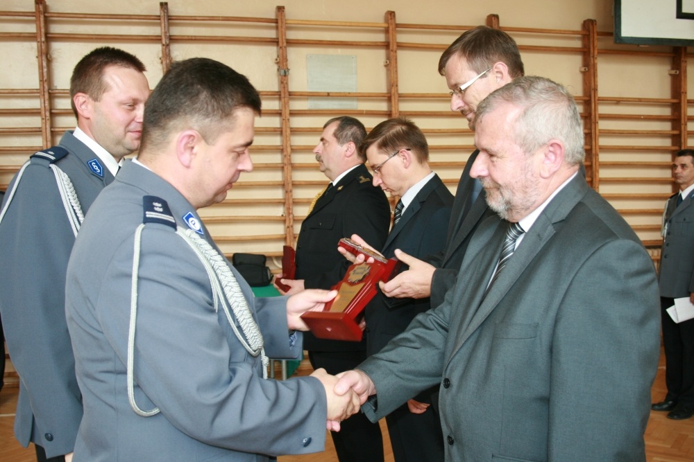 Wręczono też odznaczenia i medale nast. funkcjonariuszom i osobom: Zasłużony Policjant – asp. sztab Adam Midro, Za długoletnia służbę – podinsp. Piotr Galicki; Za zasługi dla pożarnictwa – asp. Stefan Kwiecień (złoty medal), asp. sztab. Piotr Partyka (srebrny medal), mł. asp. Witold Wolka (brązowy medal). Odznaczenie Za zasługi dla Policji otrzymał Adam Samborski, wójt Gminy Racławice. Dyplomy i statuetki za współpracę z policją odebrali: starosta Marian Gamrat, wiceburmistrz Andrzej Banaśkiewicz, prokurator rejonowy Tomasz Moskwa i st. bryg. Grzegorz Kosiński, komendant powiatowy PSP. Za awanse i wyróżnienia w imieniu wyróżnionych dziękował asp. Andrzej Śliwa. Życzenia sukcesów zawodowych i osobistych miechowskim policjantom w imieniu Zarządu Wojewódzkiego Związku Zawodowego Emerytów i Rencistów Policjantów przekazał Ryszard Kubik. Uroczystość uświetnił występ młodzieży szkolnej.