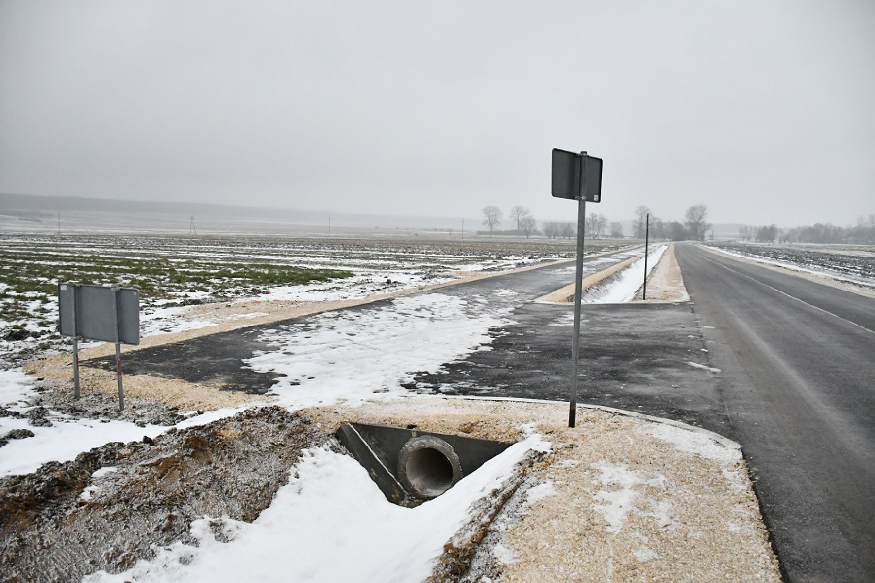 do przyległych nieruchomości, wykonanie poboczy z kruszywa łamanego, ustawienie oznakowania pionowego, wykonanie oznakowania poziomego, ustawienie barier energochłonnych.