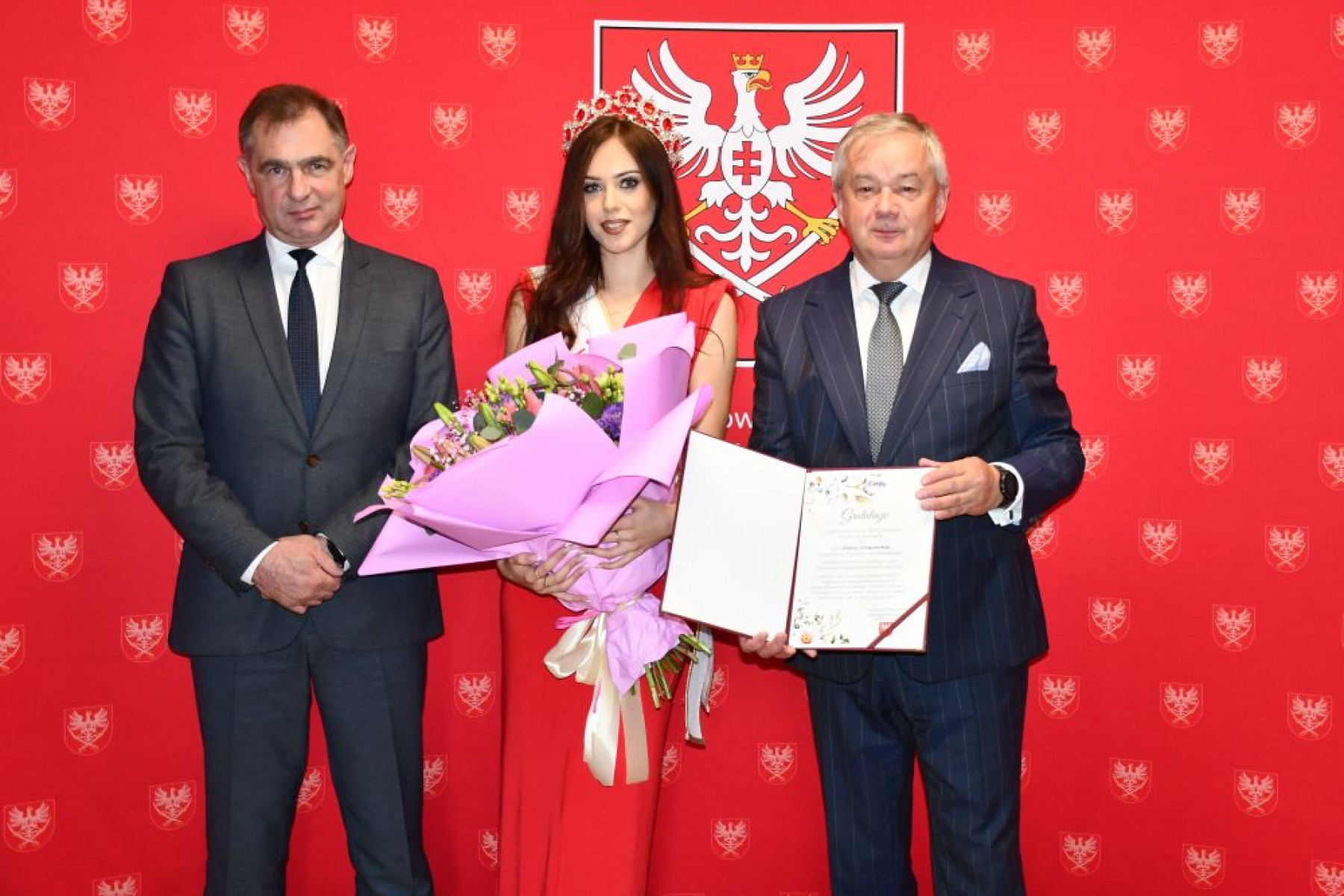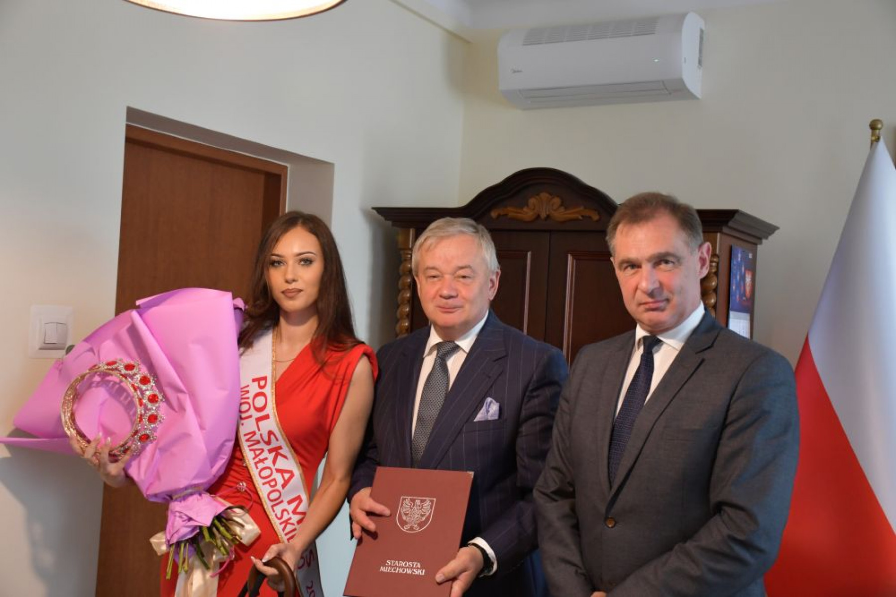 Polska Miss Województwa Małopolskiego na spotkaniu gratulacyjnym u Starostów Miechowskich