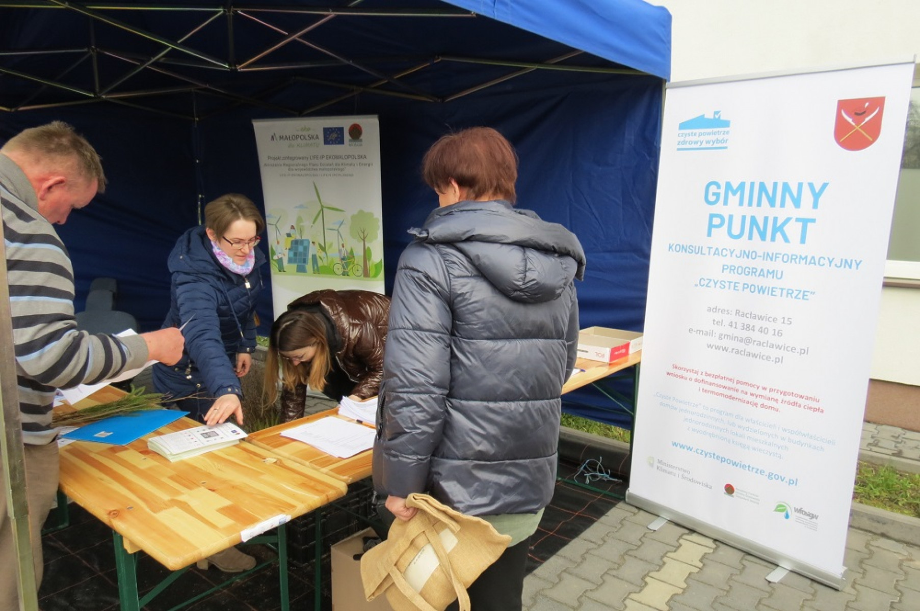 W każdej z gmin zostało wystawione stoisko klimatyczne, w którym Marzena Wiejak, powiatowa doradczyni do spraw klimatu i środowiska oraz ekodoradcy gminni udzielali informacji jak stać się bardziej eko, co oferuje program Czyste Powietrze oraz pomagali złożyć deklaracje do Centralnej Ewidencji Emisyjności Budynków. Każda osoba, która odwiedziła stoisko klimatyczne otrzymała nieodpłatnie sadzonki świerka pospolitego lub buka zwyczajnego. Osoby chętne wypełniały również krótkie ankiety klimatyczne.