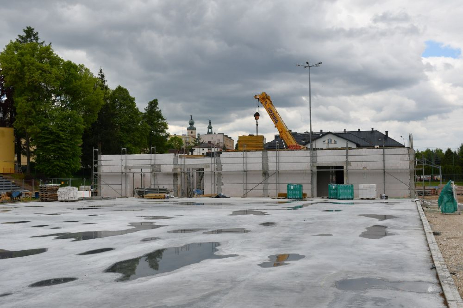 Postęp prac w budowie nowego boiska wielofunkcyjnego wraz z zadaszeniem o stałej konstrukcji przy LO w Miechowie