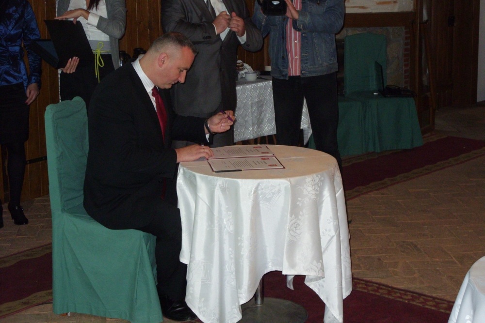 (...) Marian Gamrat i starosta śremski Piotr Ruta. Zgodnie z treścią dokumentu ,,strony wyrażają gotowość podjęcia współpracy w dziedzinie gospodarki, edukacji, kultury, sportu i turystyki. Obejmie ona również sprawy zatrudnienia i przeciwdziałania bezrobociu, sprawy społeczne oraz ochronę przeciwpożarowa i zwalczanie klęsk żywiołowych. Strony wyrażają także chęć wymiany doświadczeń zadań własnych samorządów”. Partnerzy zobowiązali się także do budowania spójnego wizerunku reprezentowanych regionów, dążąc do ekonomicznego, społecznego i kulturalnego rozwoju stron. Powiat miechowski razem ze starostą reprezentowali: Anna Frączkiewicz, dyrektor Powiatowego Urzędu Pracy w Miechowie, Czesław Mardaus, naczelnik Wydziału Rozwoju Gospodarczego, Rolnictwa, Leśnictwa, Ochrony Środowiska i Rynku Pracy oraz Leonard Mazur, naczelnik Wydziału Oświaty, Kultury i Sportu. Świadkami wydarzenia była liczna grupa samorządowców gospodarzy – wicestarosta Daniel Cicharski, członek Zarządu Powiatu, burmistrzowie, ich zastępcy i wójt gminy, dyrektorzy szkół oraz lokalni przedsiębiorcy. Obecne były również władze partnerskiego powiatu słubickiego – starosta Andrzej Bycka i wicestarosta Leopold Owsiak. Po wymianie dokumentów i materiałów promocyjnych starosta Marian Gamrat przedstawił gospodarzom powiat miechowski – jego lokalizację, statystykę, historię i kierunki rozwoju. Przy okazji ,,szczytu śremsko – miechowskiego” nie zabrakło lokalnego akcentu, jakim było tzw. rozszerzenie Partnerstwa z 2008r. czyli nawiązanie kolejnych kontaktów śremskiego samorządu z nowymi, miejscowymi przedsiębiorcami. O sytuacji na lokalnym rynku pracy mówiła Zofia Barcz, wicedyrektor PUP w Śremie. Z kolei dyrektorzy szkół prowadzonych przez powiat śremski zaprezentowali nowe kierunki nauczania uruchomione w 2011r. i zmiany w kształceniu zawodowym. Uwieńczeniem przedpołudnia była prezentacja wielkopolskiego systemu monitorowania i prognozowania w wykonaniu pracowników naukowych Uniwersytetu A. Mickiewicza w Poznaniu. Oficjalne spotkanie w Sali Myśliwskiej Zajazdu ,,Gajówka” w Zbrudzewie prowadziła Urszula Bogusz – Kubiak, dyrektor PUP w Śremie, która przed rokiem nawiązała pierwszy kontakt ze swą odpowiednik z Miechowa dyrektor Anna Frączkiewicz celem wymiany doświadczeń pomiędzy urzędami. I tak narodziła się nowa współpraca.